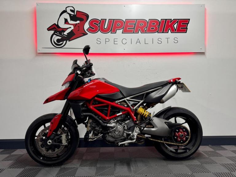 Red, The 950 received a host of updates for 2019 , You expect nothing less from a Brembo set-up bringing 200kg of Ducati plus its plump rider down to a corner-relevant speed. More power, less weight and a host of attentive (yet subtle) updates are the keys to success for the new Ducati Hypermotard 950. The 937cc V-twin produces a claimed 112bhp at 9000rpm and 71lbft at 7250rpm. This example features Ducati quickshifter, R&G tail tidy, hdatatag, lots of paperwork, two keys, owners manual and service book with a full history however the belts are due and will be done as part of the sale || At Superbike Specialists, we offer a top selection of HPI-clear used motorcycles (unless stated). Our bikes are mechanically prepared by passionate onsite mechanics, with a focus on exceptional customer service. Every bike includes a 30-day warranty, with options to extend to 6 or 12 months, a minimum of 6 months MOT, and a fresh service. UK mainland delivery starts at £50. Competitive finance and card payments are accepted. We are also an authorised Scorpion Datatool dealer, offering fully fitted S5 Thatcham-approved trackers from £299. ||, 1 owners,
