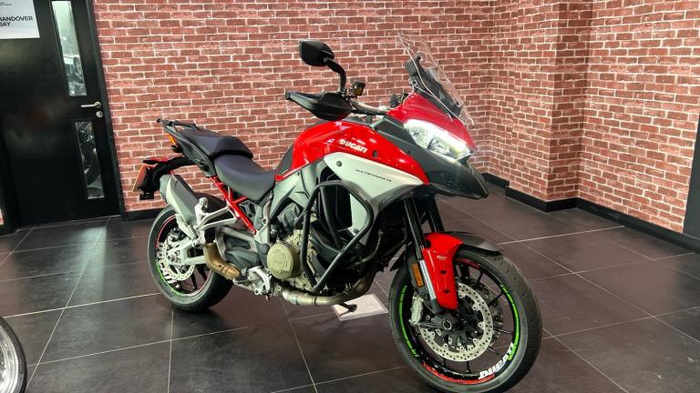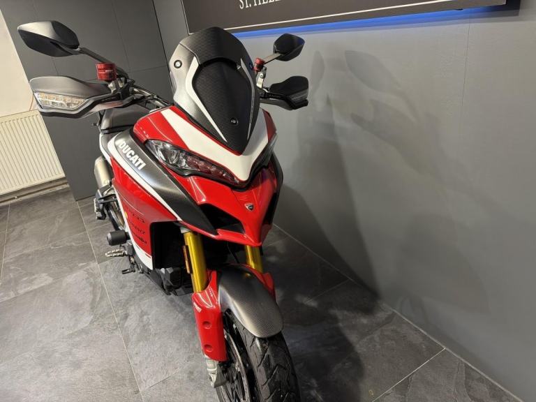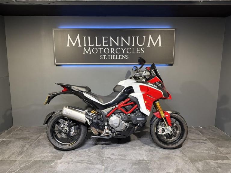 2019 DUCATI MULTISTRADA PIKES PEAK with 15124 MILES. This bike is an excellent condition of the sought after PIKES PEAK model. This bike has loads of extras including CARBON METER COVER, CARBON HUGGER and CHAIN GUARD, it also has EVOTECH ENGINE GUARD, RADIATOR GUARD and CRASH BOBBINS. All finished off really nicely with the must have TERMIGNONI EXHAUST. Also this bike has 7 SERVICE STAMPS in the book giving it an extensive service history. Choose Millennium Motorcycles for your next bike. Buy with confidence from the North West’s leading Multi-franchise dealership. Your new bike will be inspected by one of our trained technicians. Part Exchange Welcome, Finance available and Nationwide delivery. WhatsApp on [Phone number removed]or call 01744 616161. Reserve or buy online at [Website URL removed] Come pay us a visit with our amazing clothing and accessories department and on site café.