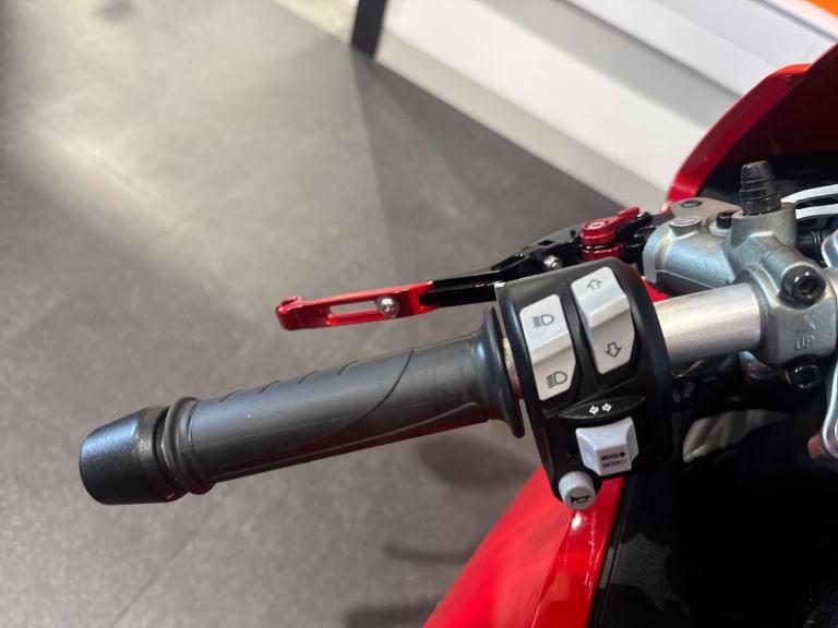 The 2019 Ducati Panigale V2 blends Italian racing style with thrilling twin‑cylinder performance and agile handling. This example comes upgraded with premium accessories including Ducati Performance levers, an Arrow exhaust, tail tidy, tank pad, and knee pads, enhancing both aesthetics and rider connection.