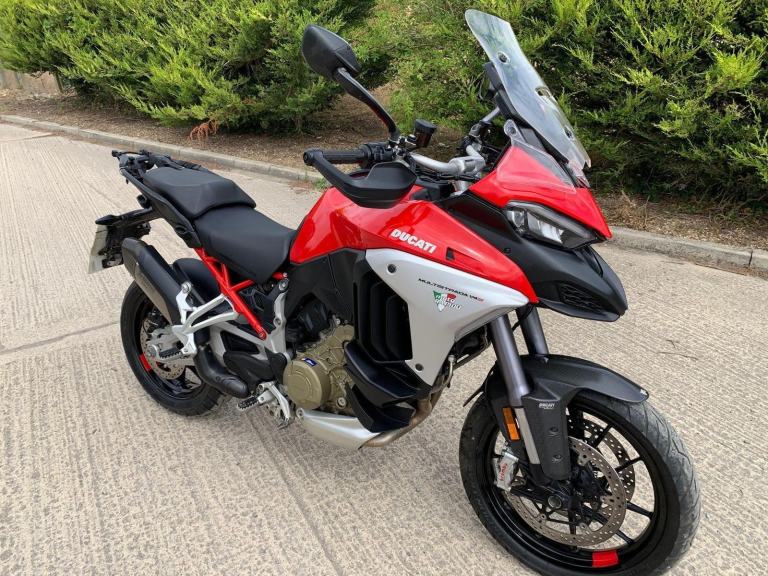 Red Ducati Multistrada V4 S, year 2021 (21 reg.), 4,989 miles and 1 previous owners. MOT included in the price. PLEASE VISIT OUR WEBSITE DIRECTLY FOR THE FULL RANGE OF UP-TO-DATE STOCK WHICH MAY NOT BE ON OTHER PLATFORMS. VIEWING STRICTLY BY APPOINTMENT ONLY. Visit [Website URL removed] call 01759 591666 or email [Email address removed. Click Email button to contact us.] for more details.