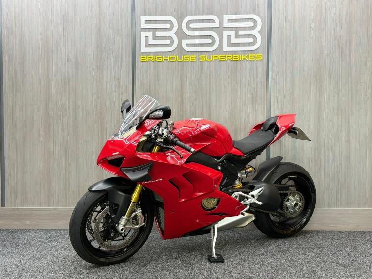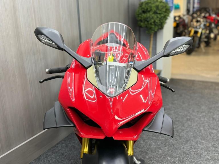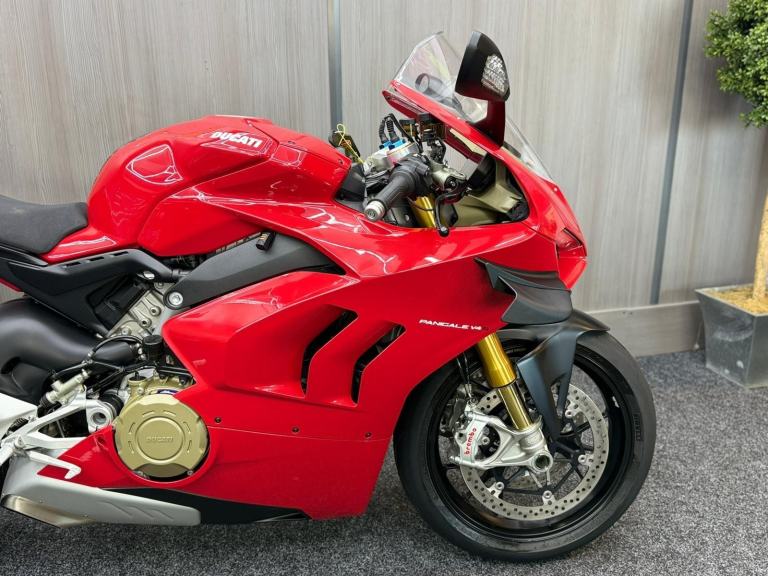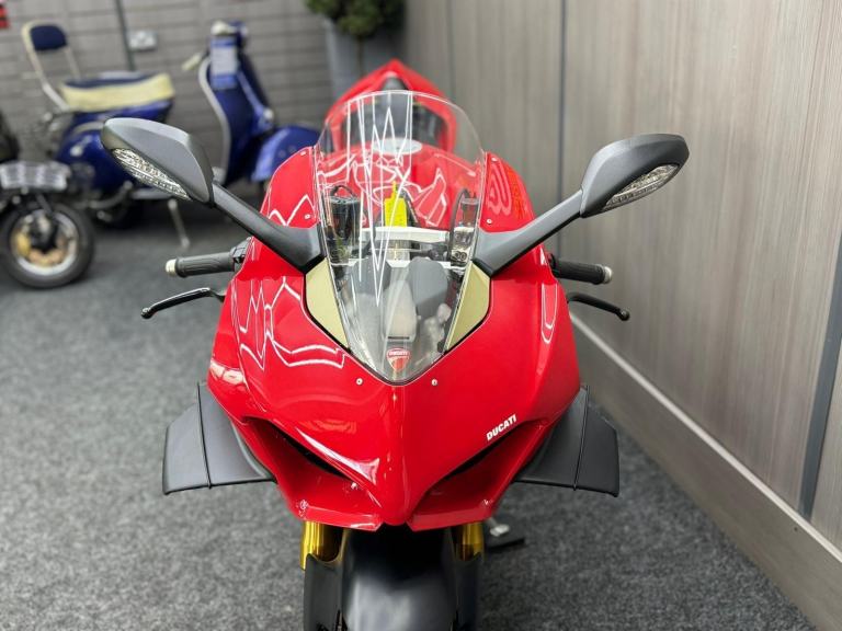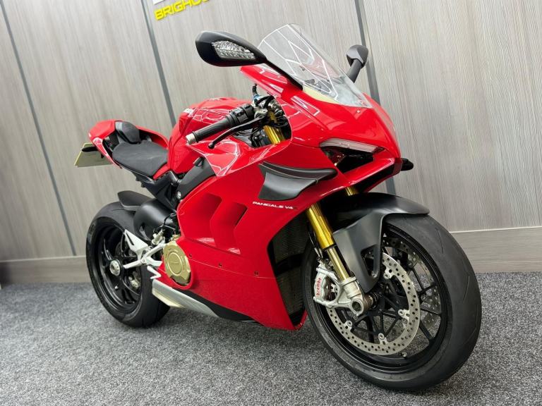 2021 21 Ducati Panigale V4S 1100 S Euro 5 ABS finished in stunning Rosso Red bodywork with just 5454 miles from new. Single owner, Single seat, ABS, Traction Control, Wheelie Control, Tail tidy, Wings, Electronic Ohlins suspension, larger clear screen. Runs, Rides & Sounds incredible, Comes complete with leather Ducati book pack including Full service history (5 stamps) & Spare key, 3 months Nationwide warranty, FOR FURTHER DETAILS PLEASE CALL BRIGHOUSE SUPERBIKES ON 01484 973625 - ALL OF OUR VEHICLES ARE HPI & MILEAGE CHECKED - LOW RATE FINANCE ARRANGED - PX WELCOME - NATIONWIDE DELIVERY - Red £19,690