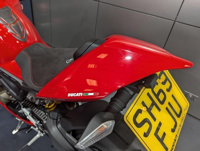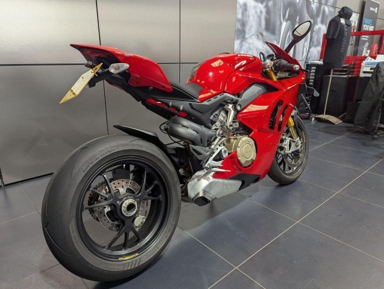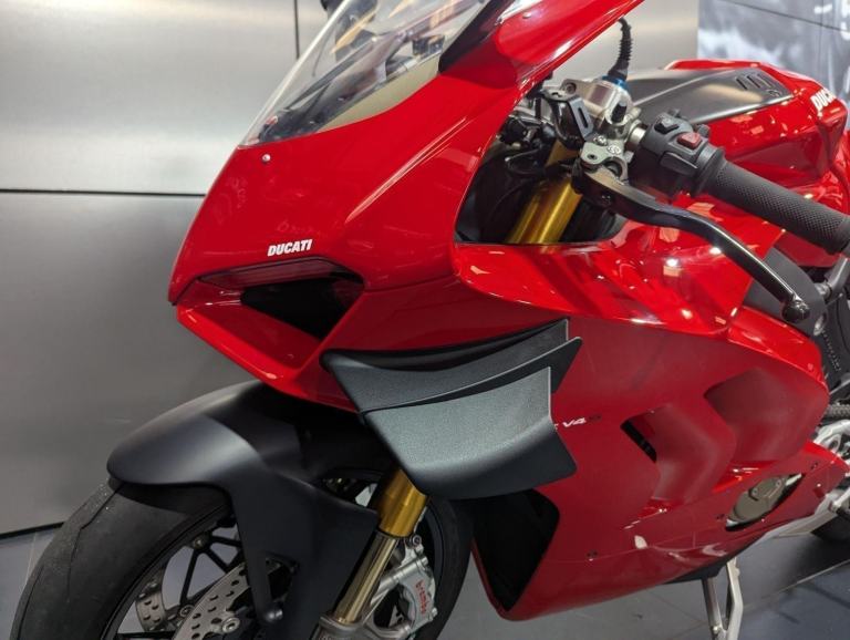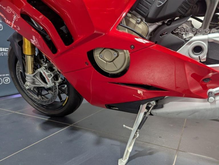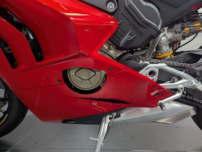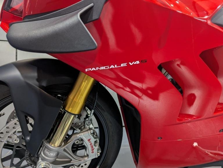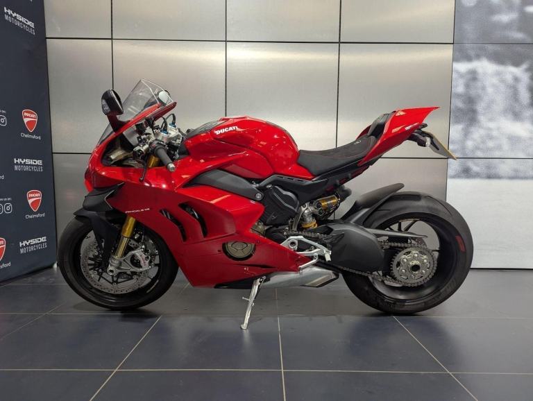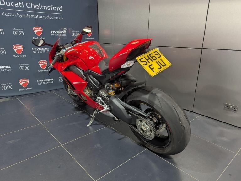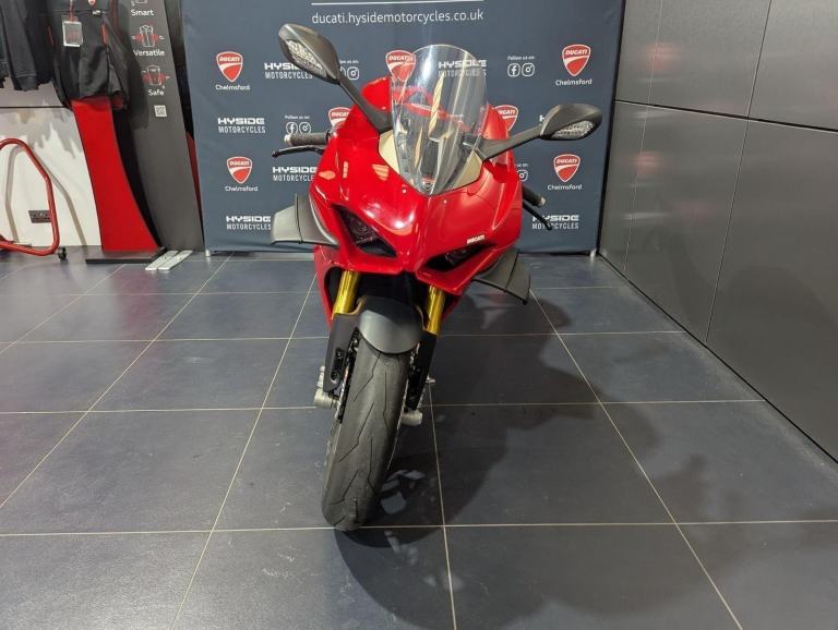 ? 2021 Panigale V4 S | Loaded ?? Price: £19,595? 2021 | 1 Owner | 9,178 Miles? Performance & Carbon Upgrades? Stunning Example ? Must SeeThis 2021 Ducati Panigale V4 S is a beautifully presented, single-owner superbike with 9,178 miles, packed with high-quality upgrades and finished to an exceptional standard. A premium example of Ducati?s flagship V4 S, this bike blends cutting-edge performance with tasteful custom detailing.Upgrades include:? Ducati Performance seat? Carbon fibre tank cover? Carbon fibre heel guards? Tail tidy? Rizoma reservoir pots? Evotech rear tank protection? Evotech radiator and oil cooler guardsWith the Öhlins electronic suspension, Brembo Stylema brakes, and MotoGP-derived Desmosedici Stradale V4 engine, this V4 S offers immense capability for both road and track ? made even better with the protection and cosmetic upgrades fitted.? Key Features:1,103cc Desmosedici Stradale V4 ? 214 hpÖhlins Smart EC 2.0 semi-active suspensionBrembo Stylema monobloc brakes6-axis IMU with cornering ABS, traction control, slide & wheelie controlSingle-sided swingarm & TFT dash1 owner from new | 9,178 milesTasteful upgrades and protection parts fitted? Why Buy This Bike?Highly maintained, fully loaded exampleTasteful carbon, Rizoma, and Evotech additionsDesirable 1-owner bikeIncredible value at £19,595Turn-key ready for summer riding or track use? Ducati Chelmsford? 01708 763360? Nationwide Delivery | ? Finance AvailableCall now to secure this stunning Panigale V4 S.Rare to find one this clean, this well-specced, and this well-priced., 1 owners, 2 keys, ABS, Belly Pan, Electric start, LED Indicators, Rear Hugger, Screen, Seat Cowl, Tail Tidy, Tank Pad, Traction Control, Contact us for the best deals on all new Ducati models call now 01708 706677