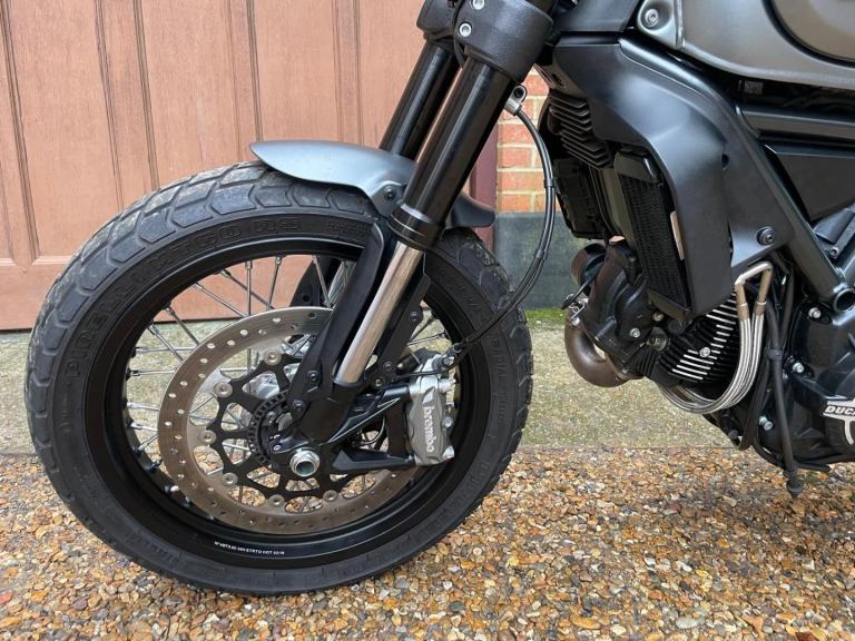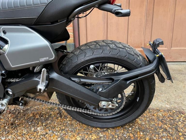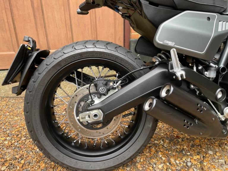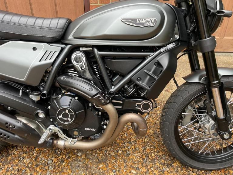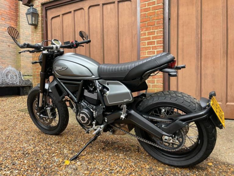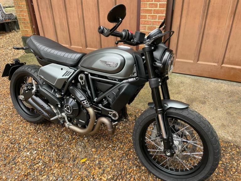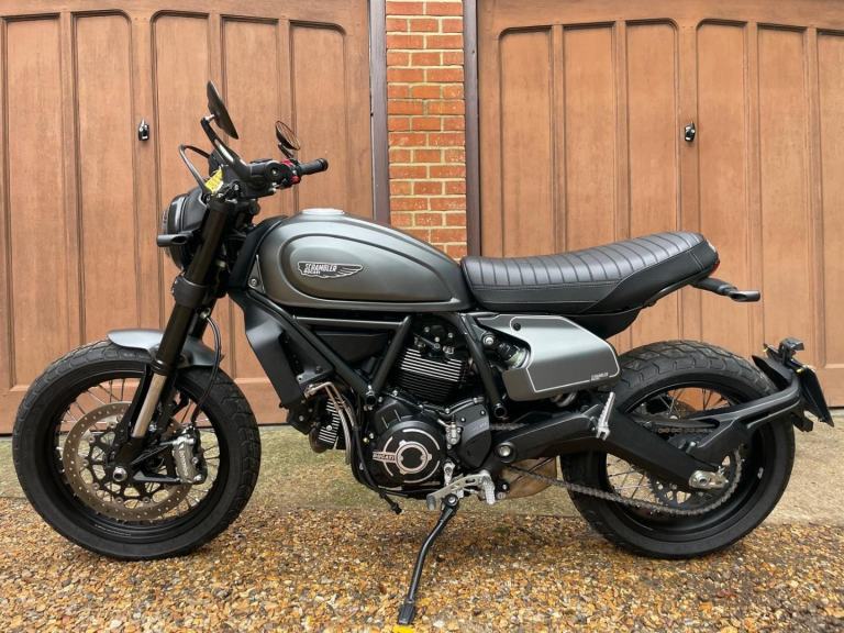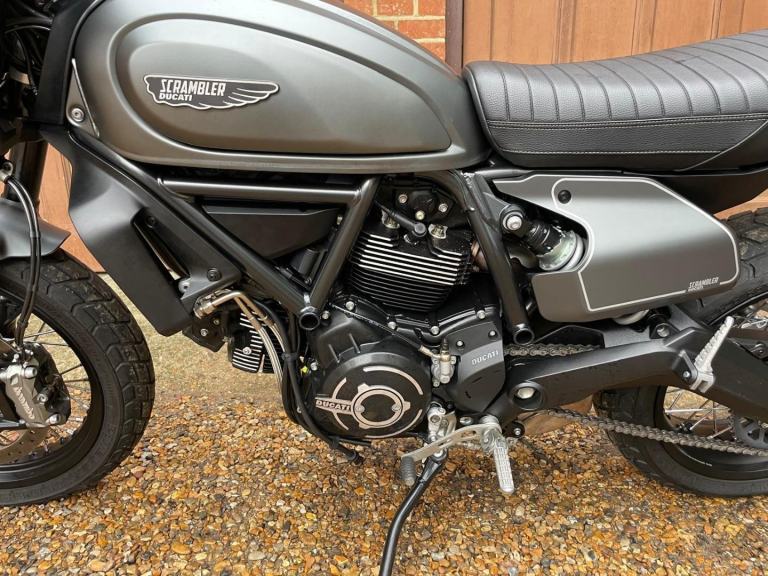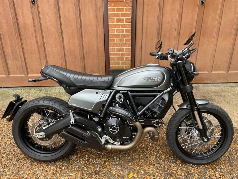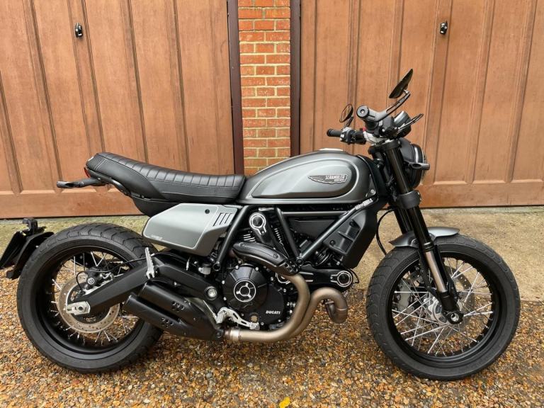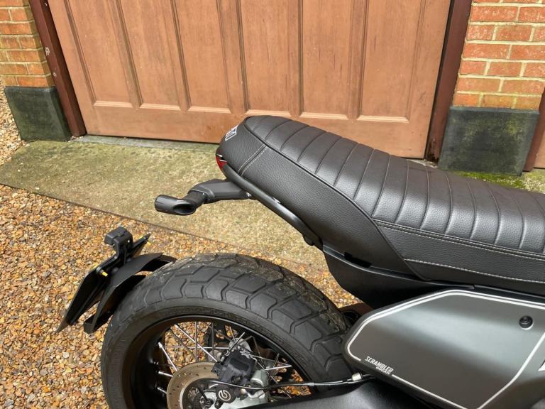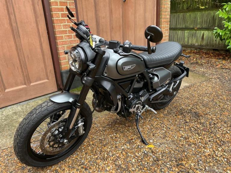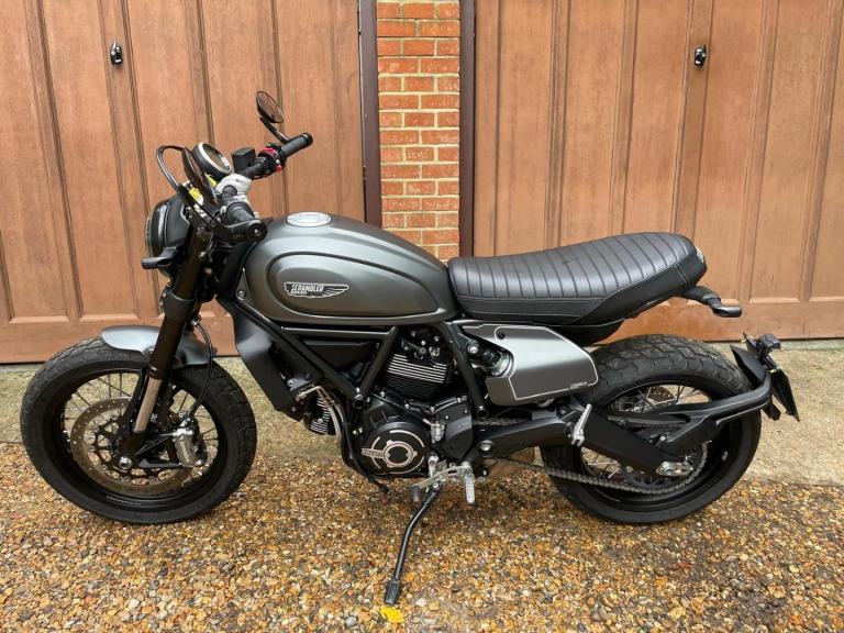 A lovely looking machine in superb condition with only 1390 miles from new with a Full Service History and will be sold with a years MOT. This version of the Scrambler 800 has a distinctive cafe racer-inspired look with flat handlebars, wire wheels, a black-finned engine, and a cafe-style saddle. The Nightshift includes a modern clock display that is clear and easy to read, with features like gear indicators, fuel level, and mode selection. It also comes with two riding modes, four-level traction control, and cornering ABS as standard. Ducati Performance LED indicators which are also self-cancelling. There is also a LED DRL headlight and USB under the seat is a nice touch. Supplied with Handbook, Service Book and Spare Key. Delivery Available .