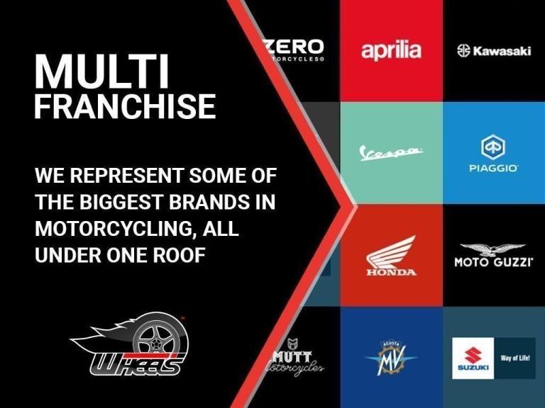 East Anglia's largest motorcycle and scooter dealership including the areas only Aprilia centre. Wheels has a reputation of outstanding service supplying new and used motorcycles and scooters from Aprilia, BMW, Ducati, Honda, Kawasaki, KTM, Piaggio, Royal Enfield, Suzuki, Harley Davidson, Triumph, Yamaha, Moto Guzzi, Vespa, Mutt, Zero, Supersoco and Niu. Our fantastic service & MOT centre is fully equipped to look after your motorcycle including all aspects of servicing, fault diagnosis and accessory fitting. and clothing department with the UKs largest Alpinestars store stocks all the top names in clothing and accessories including Alpinestars, Dainese, RST, Kriega, Rukka, Shoei, Arai, AGV, HJC, MotoGirl, Muc Off, SDoc and many more. And with motorcycle training and a large on-site cafe, Wheels Motorcycles really is a complete bike experience.