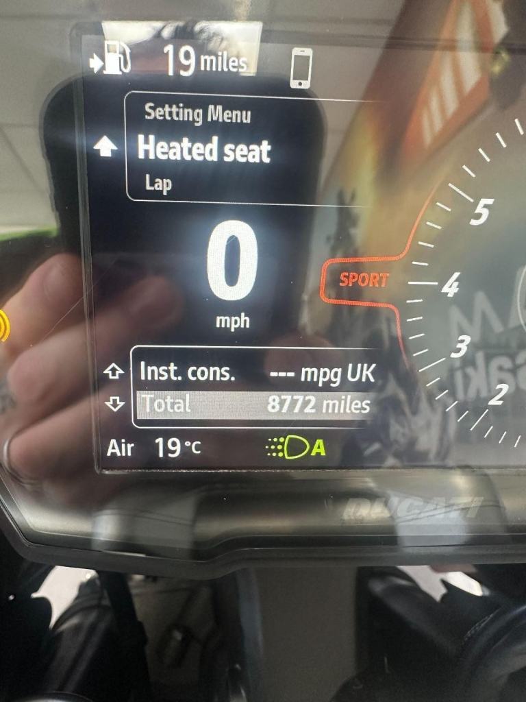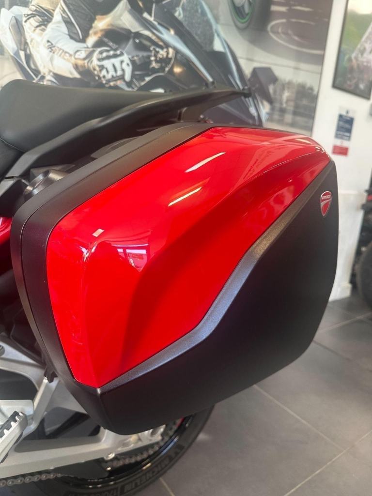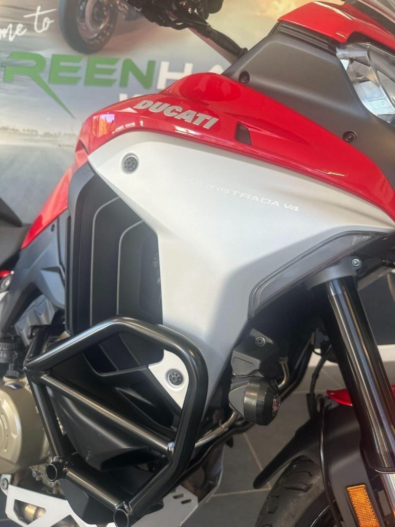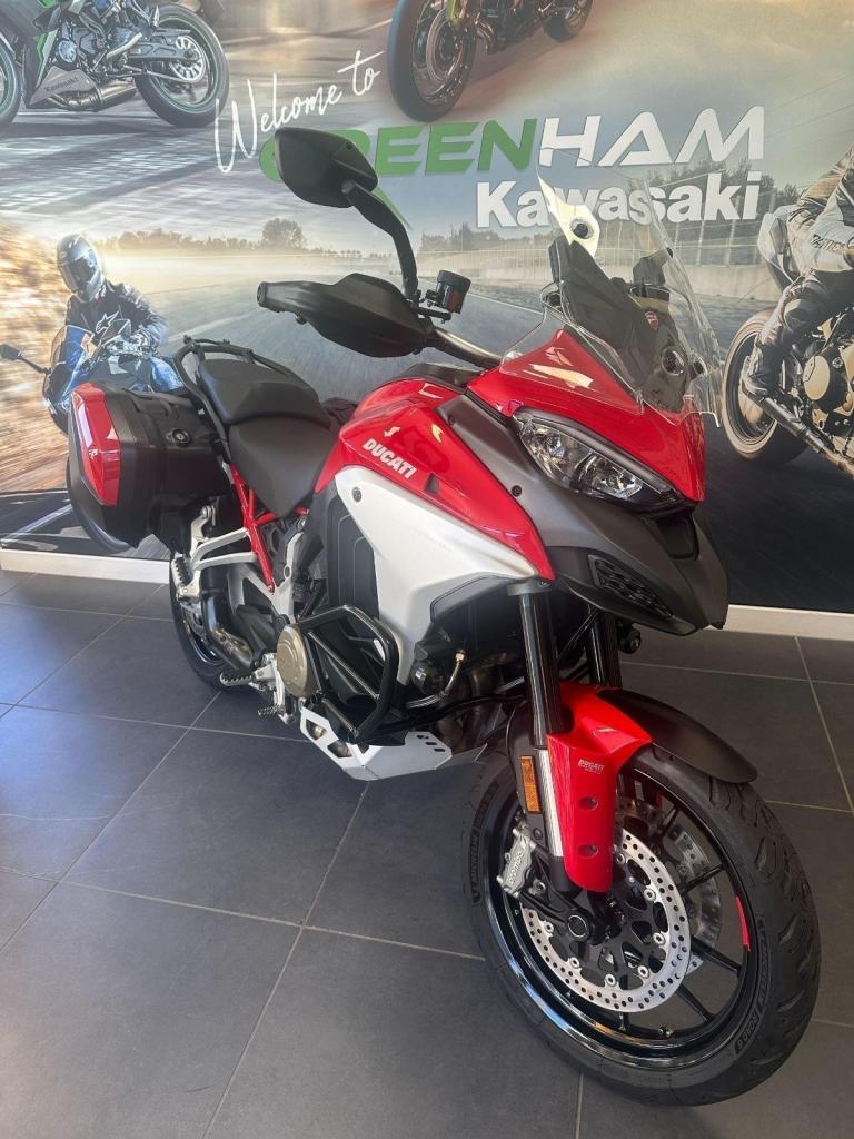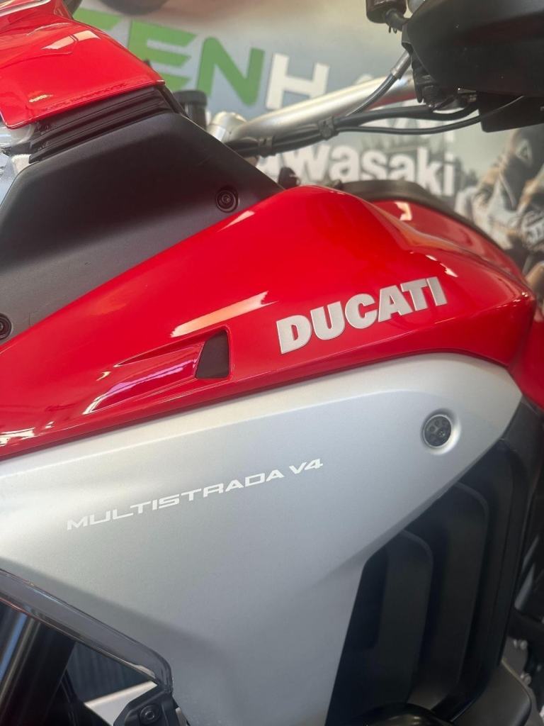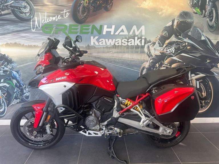 Red, Multistrada V4 is for those who want to comfortably explore all paths, without compromising on the sports attitude that distinguishes every motorcycle built in Borgo Panigale. More high-performance, efficient and technologically advanced, it amplifies your riding experience, highlighting the pleasure of travel in its every detail. Packed with technology including Cruise control, Quickshifter, Traction control, Heated Grips and loads more.Superb Multistrada V4 in great condition throughout and fitted with Ducati panniers and Engine crash bars.Supplied with the original Ducati pack, 2 keys and fobs, full service history, last serviced at 8467 miles in July 2025 and will have 12 months MOT.As with all Greenham Kawasaki used models, it includes a 12-month guarantee for your peace of mind, with nationwide delivery also an option. Should you have any additional questions about this or any other model here at Greenham Kawasaki, please do reach out to us on 01635 916464 ? we look forward to hearing from you. Part exchange very welcome., 2 owners, 2 keys, ABS, Belly Pan, Centre Stand, Crash Bars, Cruise Control, Electric start, LED Indicators, Panniers, Rear Hugger, Traction Control, HEATED GRIPS