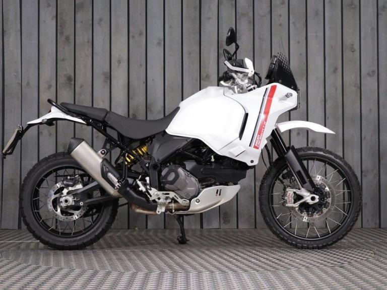 This 2023 WHITE DUCATI DESERTX motorbike has done 7375 miles and is in superb condition. It's available for collection from our CRAWLEY showroom or can be delivered anywhere on the UK Mainland. This bike comes with 2 Keys, and a PART SERVICE HISTORY.