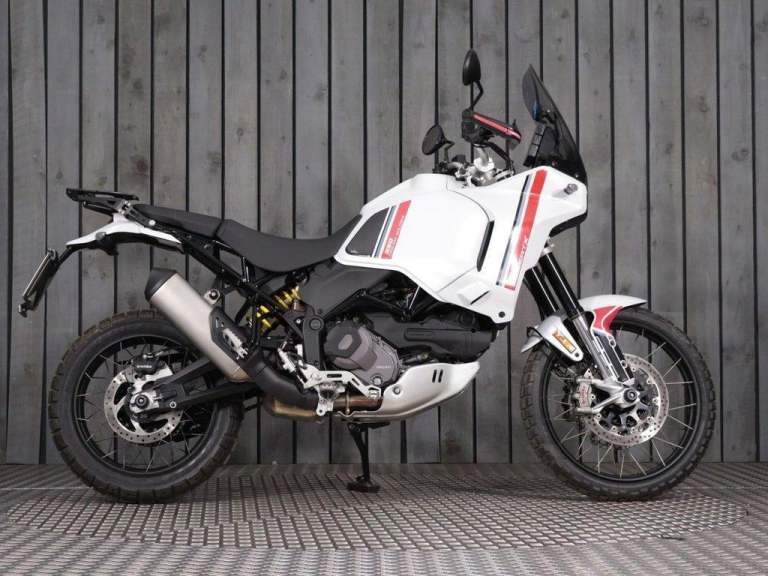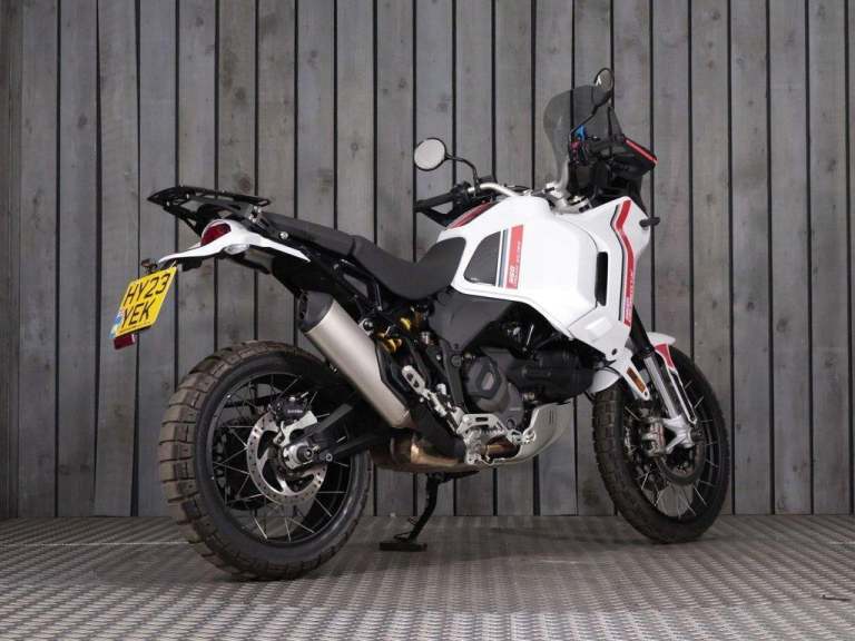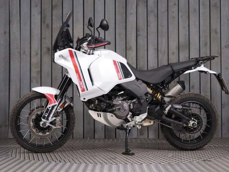 This 2023 WHITE DUCATI DESERTX motorbike has done 1678 miles and is in brilliant condition. It's available for collection from our BRISTOL showroom or can be delivered anywhere on the UK Mainland. This bike has 1 previous owner, comes with 2 Keys, a PART SERVICE HISTORY, and last serviced at 1,678 miles.