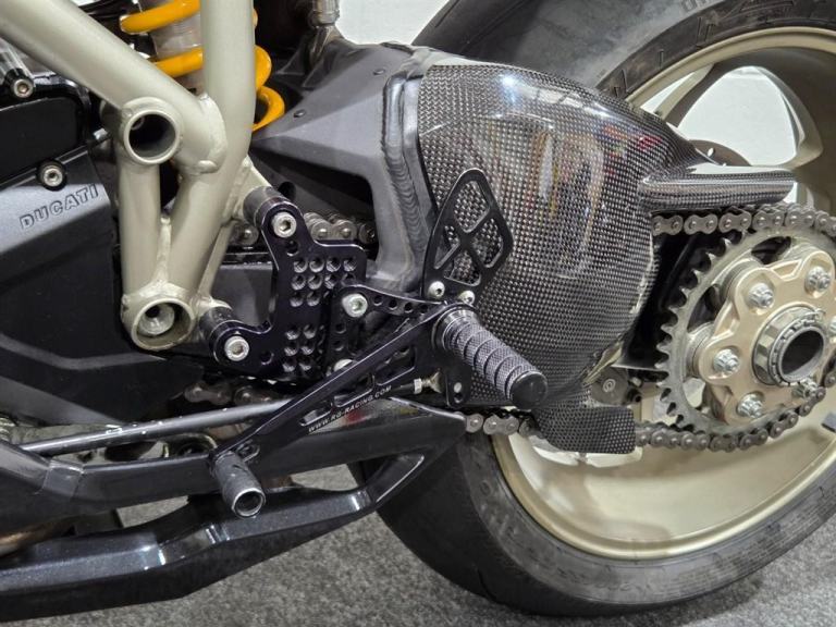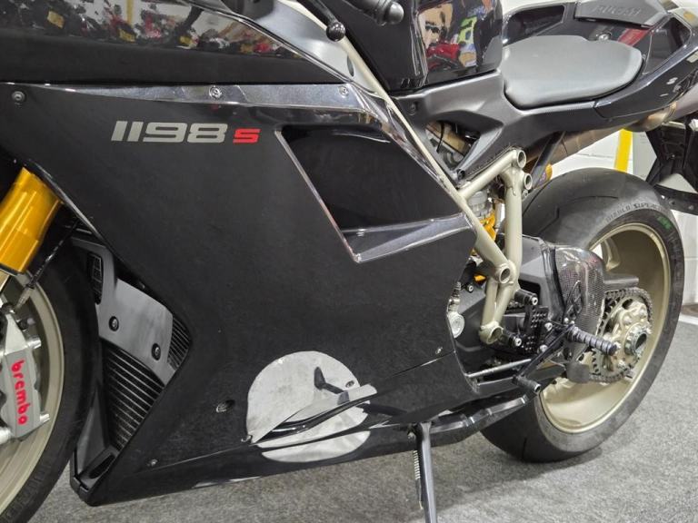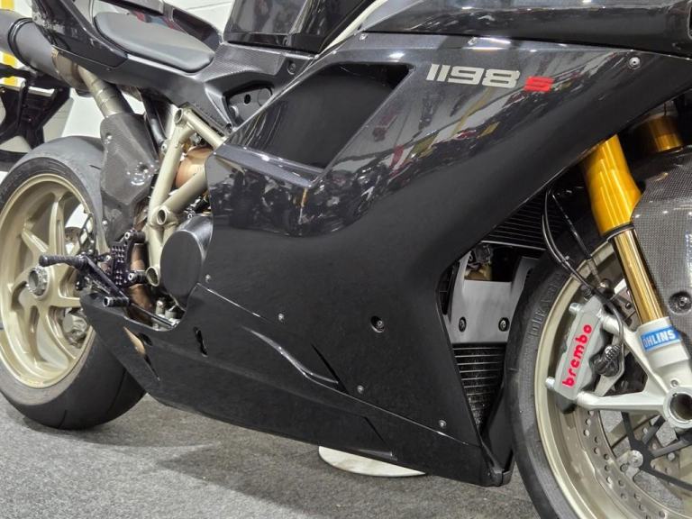 This Ducati 1198S has barely been run in and is in pristine condition for its age as you would expect. Being an S model, it comes equipped with Ohlins Suspension, both Front and Rear and a pair of Marchesini Light-Weight Wheels too. On top of this, the bike has been fitted with extra Carbon Fiber Accessories, After-Market Rear Sets and a Seat Cowl too. These S models are becoming increasingly rare to find, especially in black and are sure to become collectable in the near future. The bike just recently had a Fresh Pair of Belts, Annual Service and Brand New Tyres fitted to it this year and will be leaving us with a Full PDI, a 12 Month MOT and a 1 Month Warranty. At Apex Motorcycles we are just as passionate as you about motorcycles and we offer the finest selection of used motorcycles available. All our bikes are HPI clear and are mechanically prepared and test ridden thoroughly before they leave us. All our bikes come Warranted | UK Mainland Delivery available | Competitive Finance available | P/X always welcome.