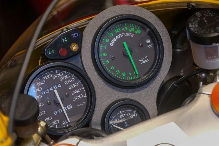 The bike we offer is a December 2000 model having covered just 3,454 Kilometres (2,145 miles) from new. The bike has recently undergone a major mechanical restoration which is fully documented in a full written report with invoice showing a cost of £8,291. Originating in Italy the bike was brought to the UK and registered with an age related number plate in 2019 with the above restoration carried out in May 2023. The bike is fitted with Brembo brakes, Marschesini wheels, Ohlins rear and Showa front suspension and a carbon Termignoni exhaust as well as being supplied with 2 keys, the original handbook, service book and exhaust system, spare seat, bike cover and original charger.