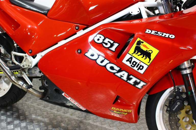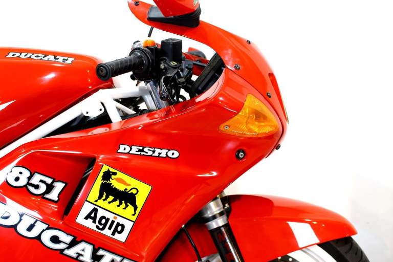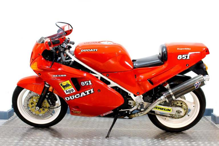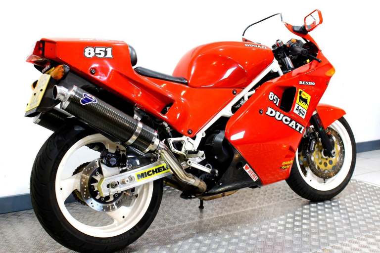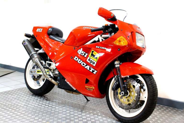 1989 Ducati 851 in red. Date of registration 01/08/1989. 42059km. Comes with handbook, service book and 2 keys. With carbon cans and rear hugger. 12 months MOT. Some old MOT’s and a file of historic paperwork.