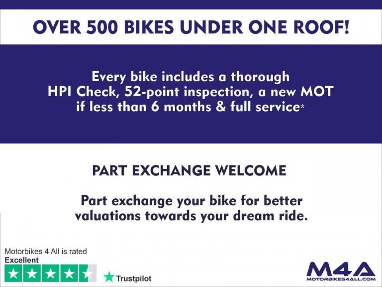 All of our bikes are fully inspected, serviced if necessary, and in most cases come with a full 12 month MOT unless stated otherwise, as well as a Three month Warranty. This ensures us that our customers can purchase in confidence time and time again.