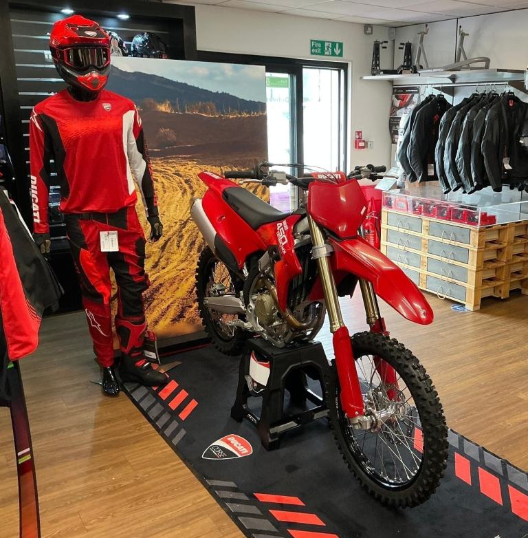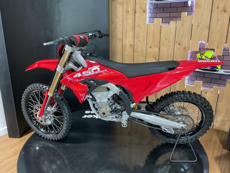 Ducati Desmo 450 MX 2026 In Stock Now and selling fast!! Ducatis 1st ever 450 Motocross Bike!! Ground breaking, Game changing Desmo Valve 450… Quick Shifter!! 63.5Bhp Tourque 53.5nm with an 11900 Rev Limit!!!! Beat the queues and get yours ordered today. Full Spec on our website Now and the cost is £11245