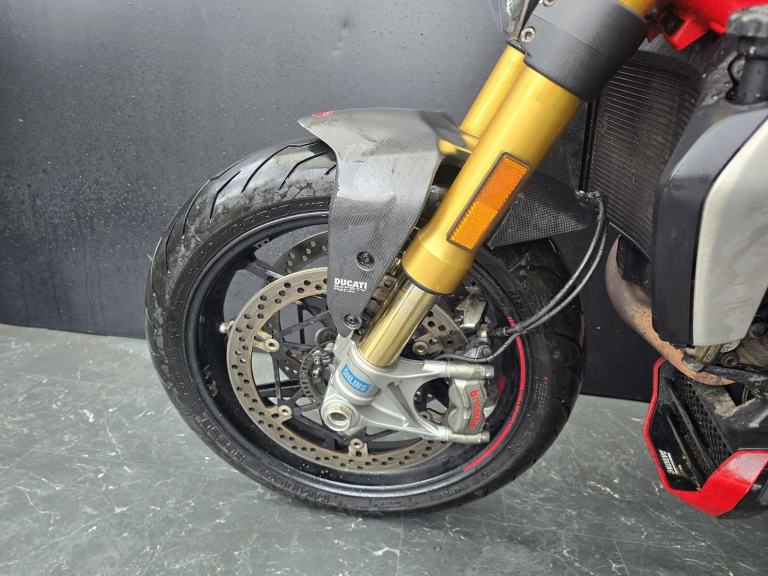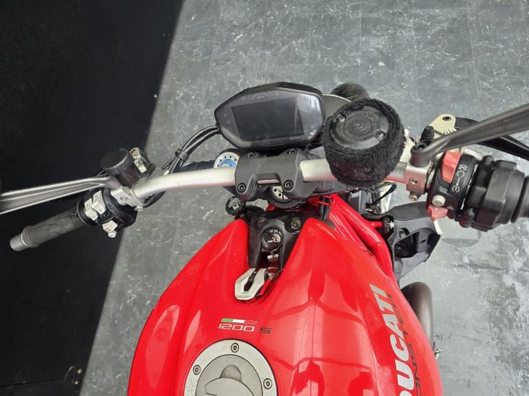 Here we have for sale a Ducati M1200 as a trade sale in overall very nice condition. This bike starts on the button, the engine sounds good. The mileage currently displays -----, the last MOT states it had done 8,178 miles. As shown, there is a small ding in the tank. It does not have MOT currently, with the previous expiring 02/04/2025, we don't think it'll need much. Both tyres have plenty of life left, the electrics are functional. We have the V5, service book with 5 stamps, and Owner's manual for this bike.