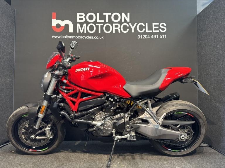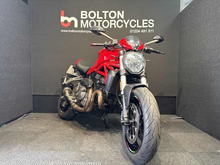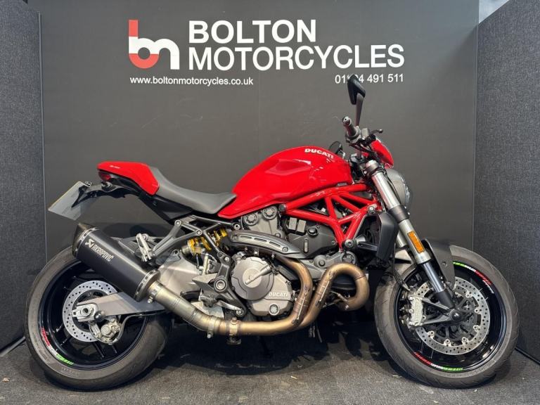Introducing the incredible and stunning DUCATI M821 naked Motorcycle. This 2018 model comes in a bold and eye-catching red colour that is sure to turn heads wherever you go. With just 4572 miles on the clock, this beauty is practically brand new and raring to hit the open road. Fitted with full Akrapovic Exhaust, Tail Tody, Rizoma Crash Bungs, Indicators and Fuel Cap. Comes with Handbook, Service Book and 2 Keys. Will have fresh service and 12 months MOT when sold.
