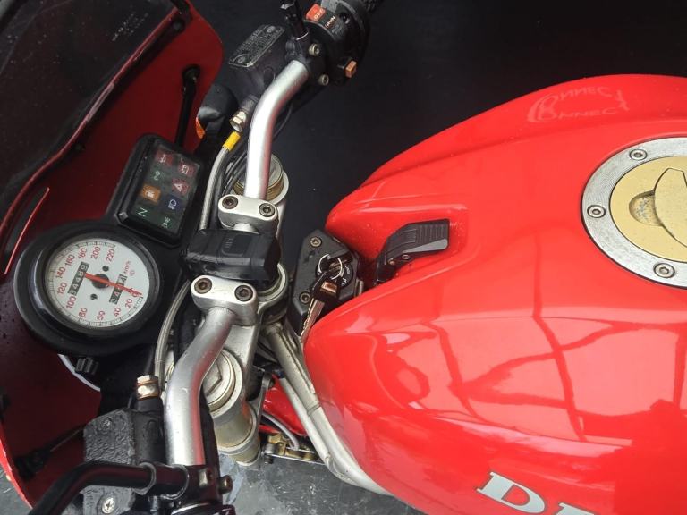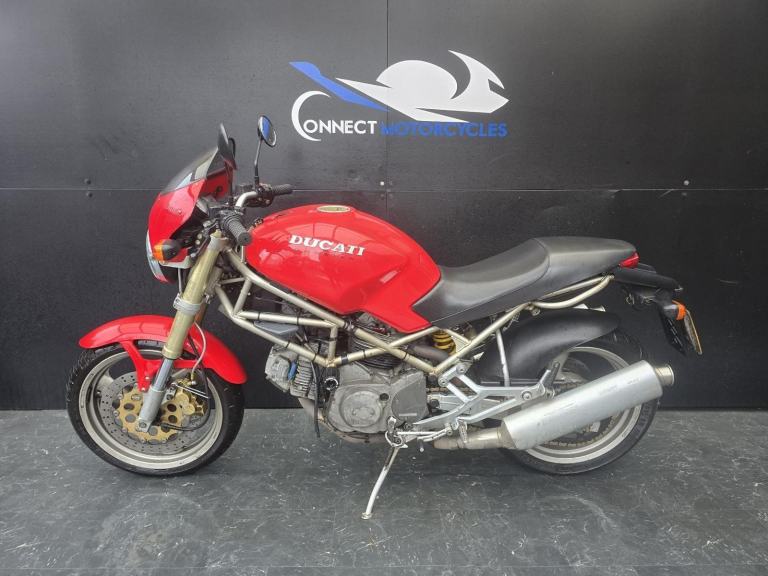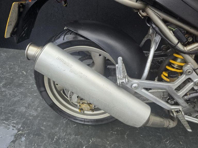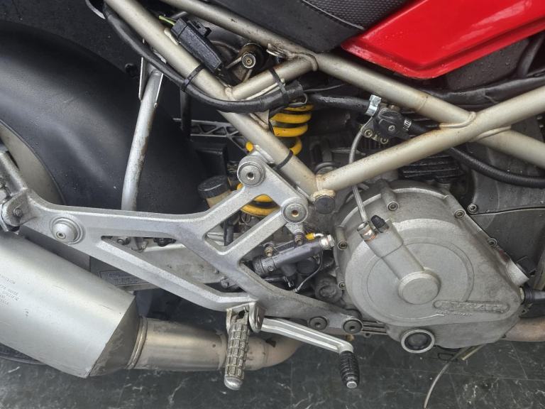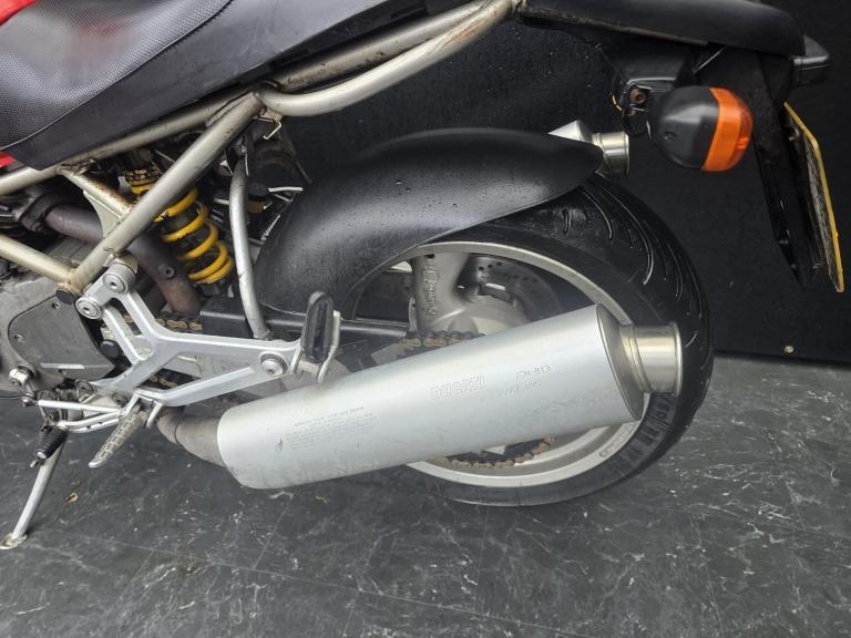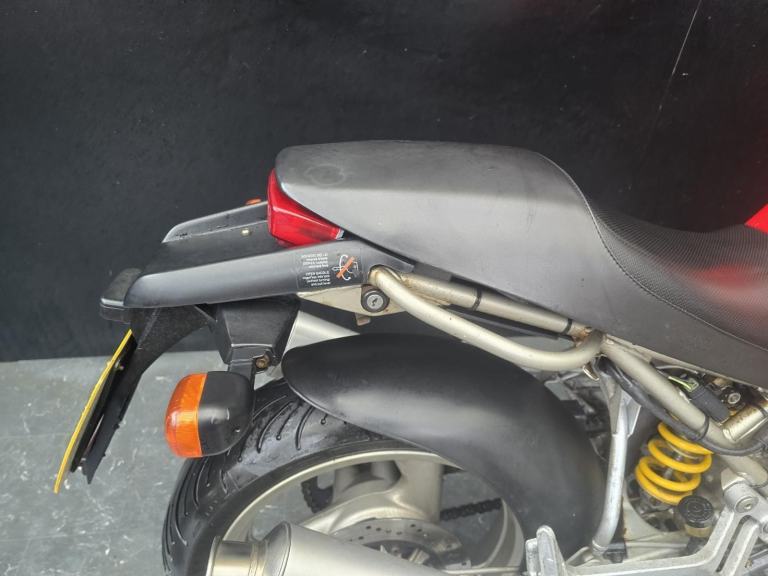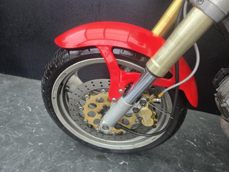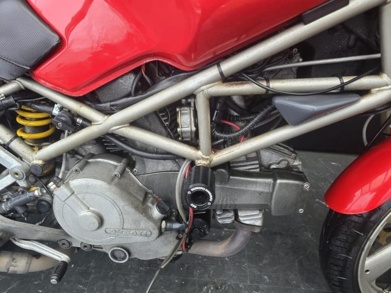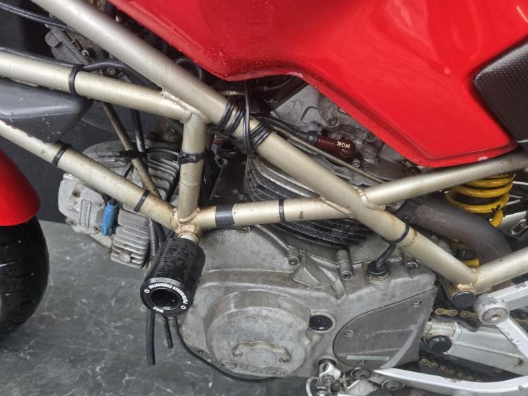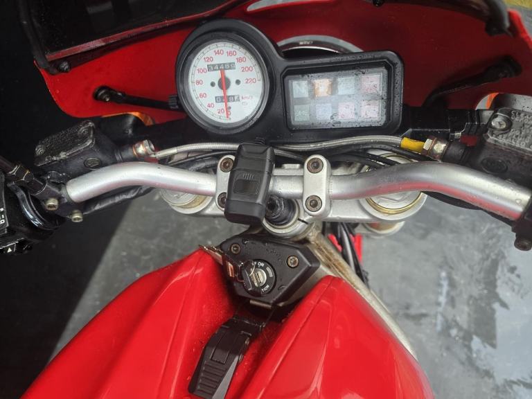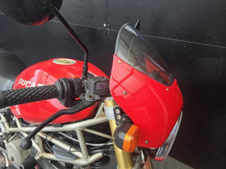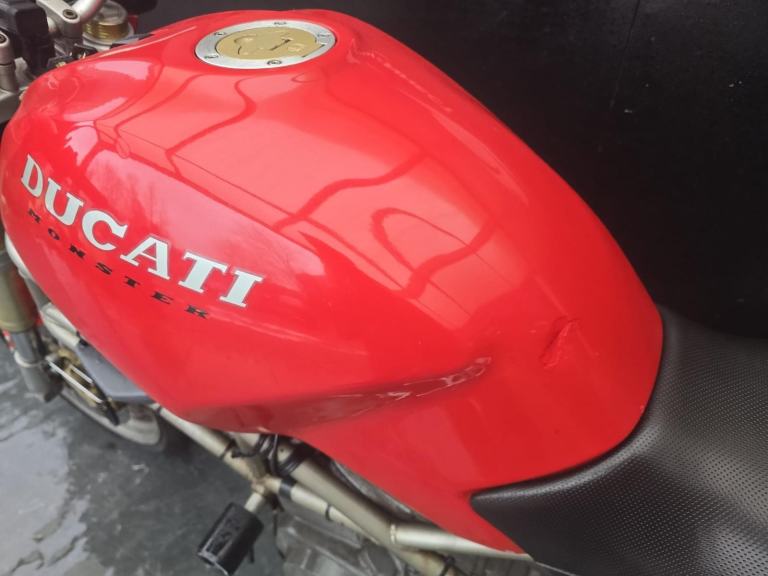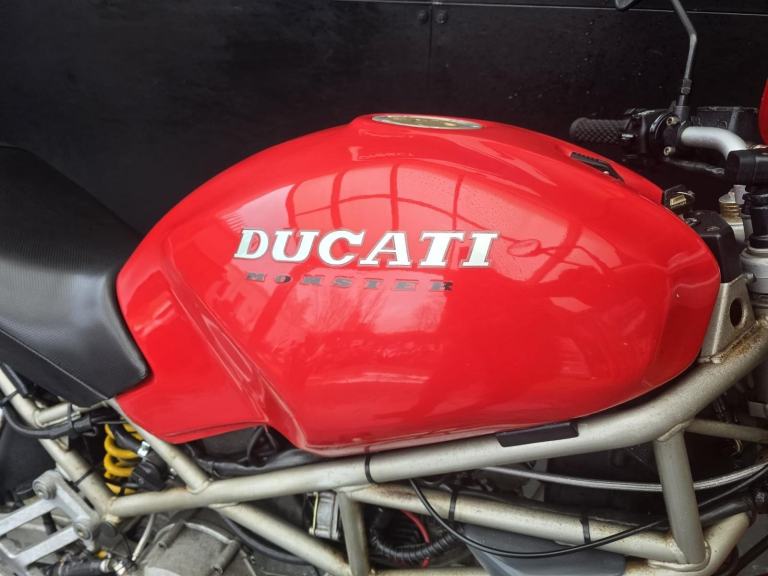 Here we have for sale a Ducati Monster 400 as a project bike in overall good condition. This bike starts on the button and runs well, the engine sounds good. All electrics are functional and the tyres are in good condition. As shown, there is a ding in the tank. This bike was imported from Japan in 2019 and has been registered in the UK. The MOT expires 14/01/2027, despite this, we would recommend a thorough check over before riding. We have the V5 and some maintenance receipts for this bike.