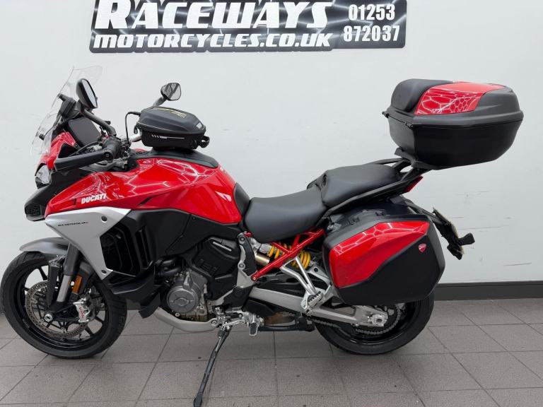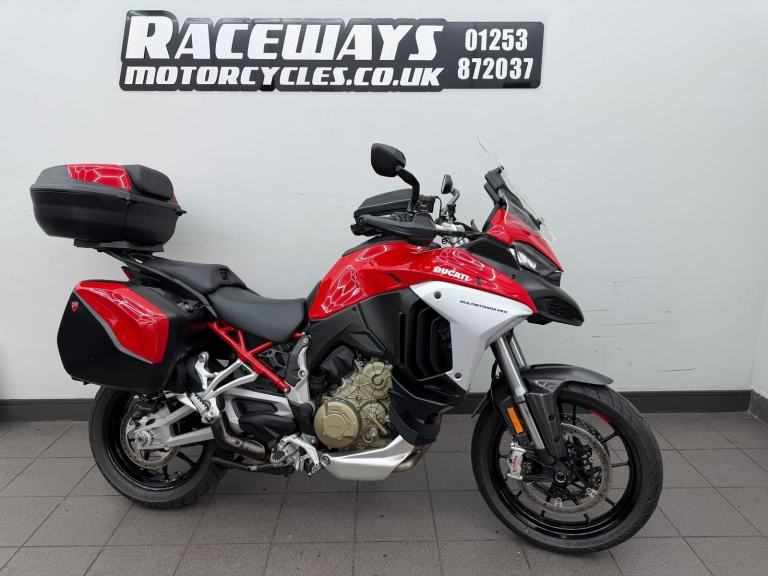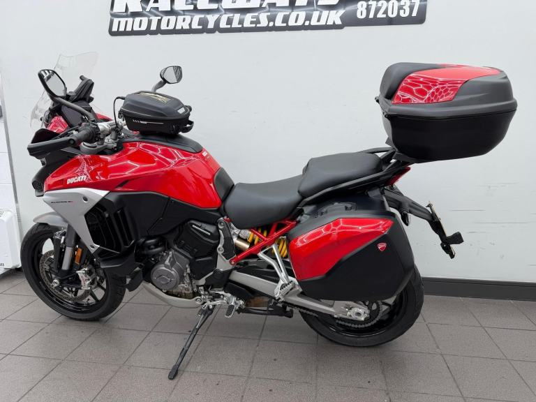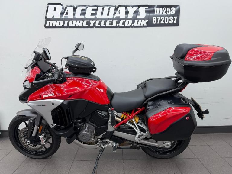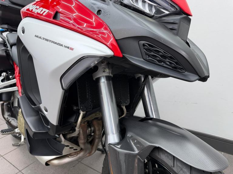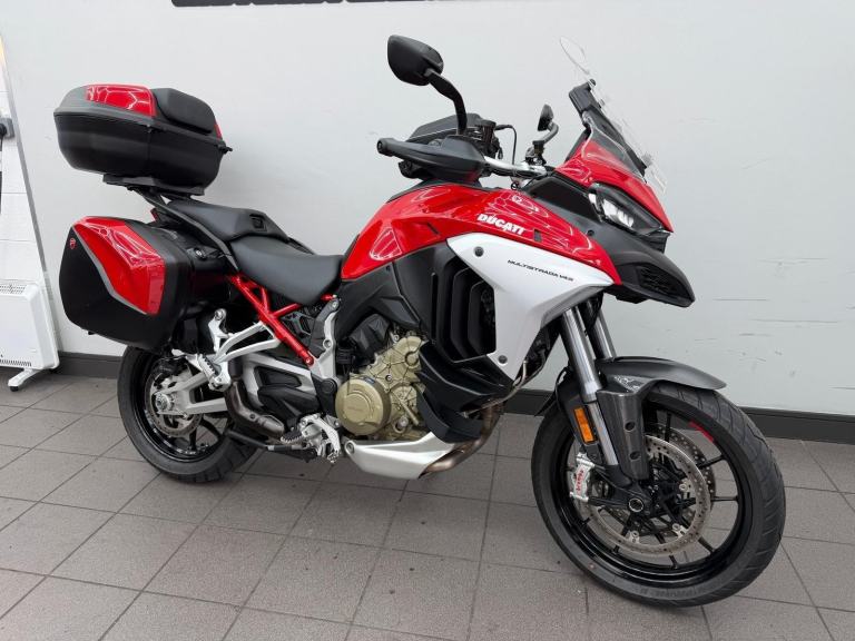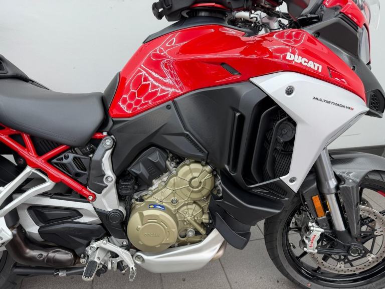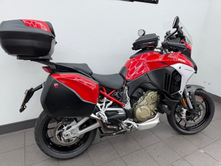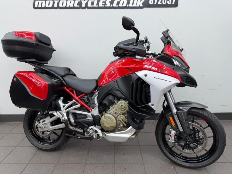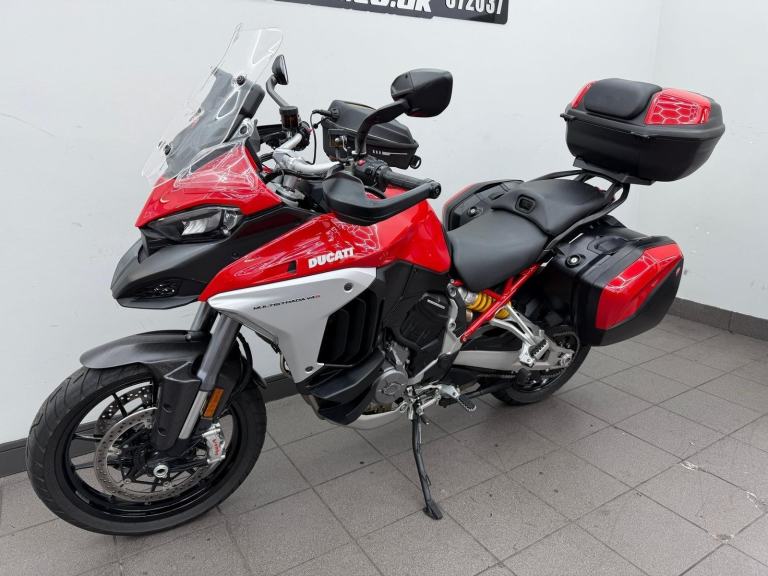 DUCATI MULTISTRADA V4S, 2022, 22 REG, 24,455 MILES, RED, USED MOTORCYCLE, 1158CC, ALL ORIGINAL BOOKS & KEYS, PART SERVICE HISTORY (SEPT 2022 AT 655 MILES, APRIL 2024 AT 9,495 MILES, JAN 2025 AT 17,154 MILES) COMES WITH A VEHICLE HEALTH CHECK & MINIMUM 3 MONTHS MOT (EXPIRES 18/08/2026) RIDER MODES, TRACTION CONTROL QUICKSHIFTER, TFT DASH, FULL DUCATI LUGGAGE & TANK BAG, AKRAPOVIC END CAN (ALSO COMES WITH ORIGINAL), CARBON FRONT MUDGUARD (ALSO COMES WITH ORIGINAL), RADIATOR GUARD, PPF PROTECTION ON THE FRONT (IS PEELING), HEATED RIDER & PILLION SEATS, CENTRE STAND, RADAR CRUISE CONTROL, 1 OWNER FROM ! DELIVERY AVAILABLE, FINANCE AVAILABLE,
