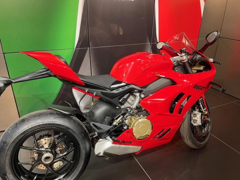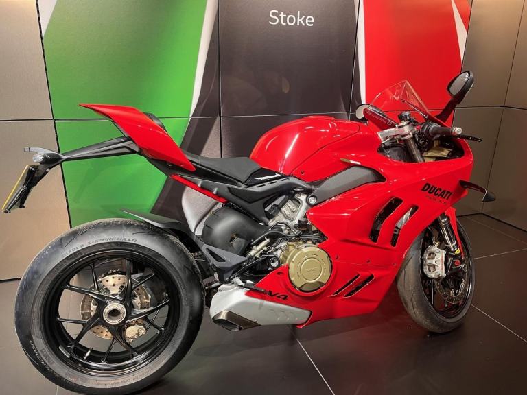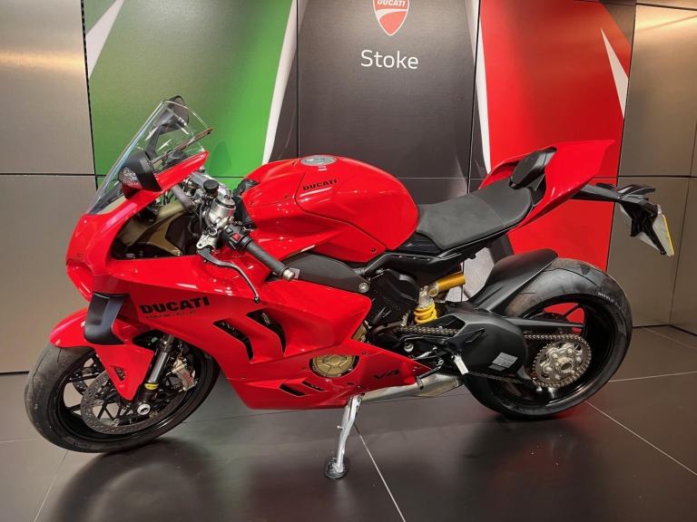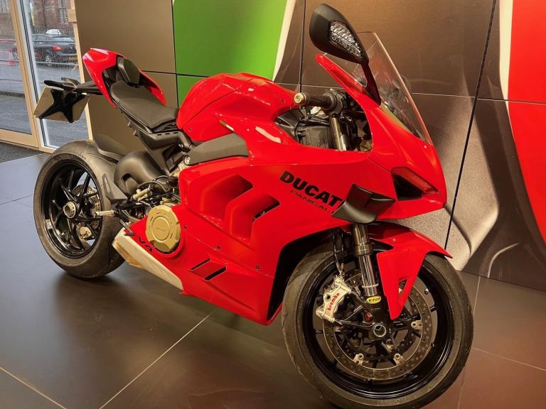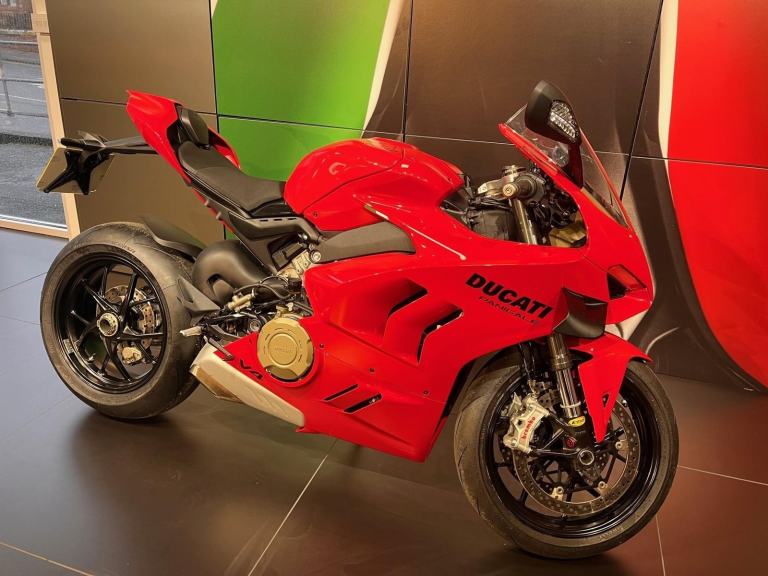 HERE WE HAVE A ONE PRIVATE OWNER FROM 2022 22 PANIGALE V4. IT IS THE UPDATED MODEL WIT THE MORE ADVANCED ELECTRONICS, BI PLANE WINGS AND BIGGER AERO PACKAGE ON THE FAIRING. IT WAS SUPPLIED BY US AND ITS ONLY COVERED 1650 MILES ! TOTALLY STANDARD APART FROM A K-TECH FRONT FORK INTERNAL UPGRADE TO ENHANCE THE RIDING EXPERIENCE FOR THE OWNER. WILL LEAVE US WITH A FRESH SERVICE AND MOT READY FOR THE OWNER.