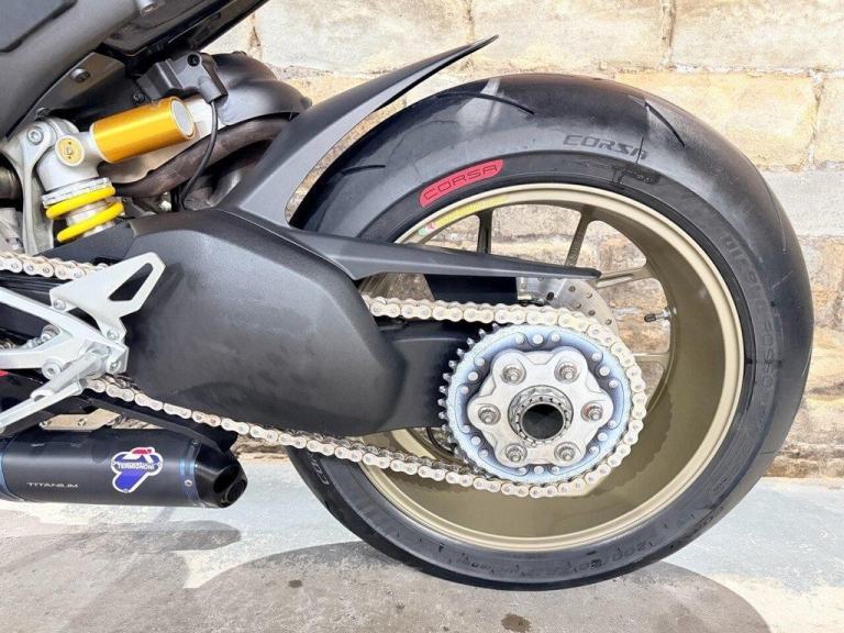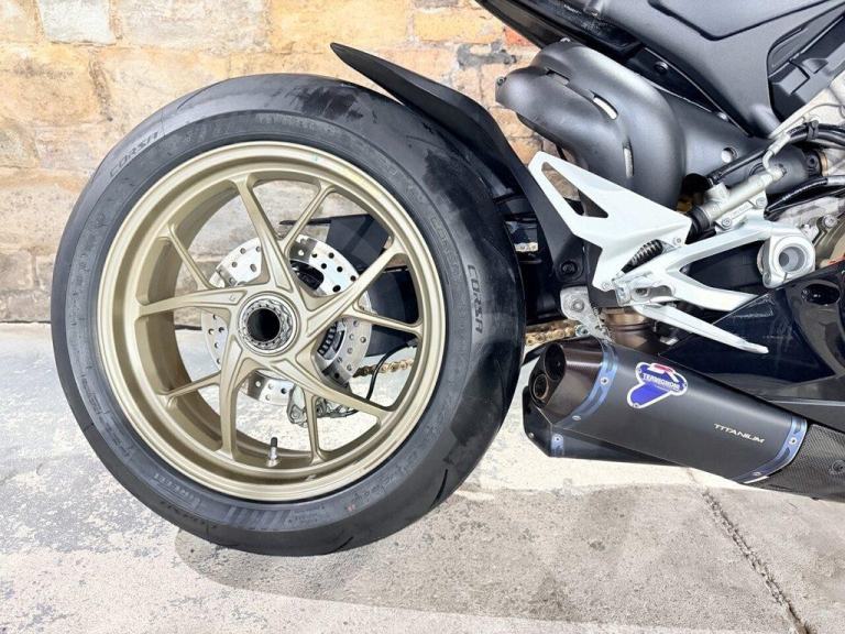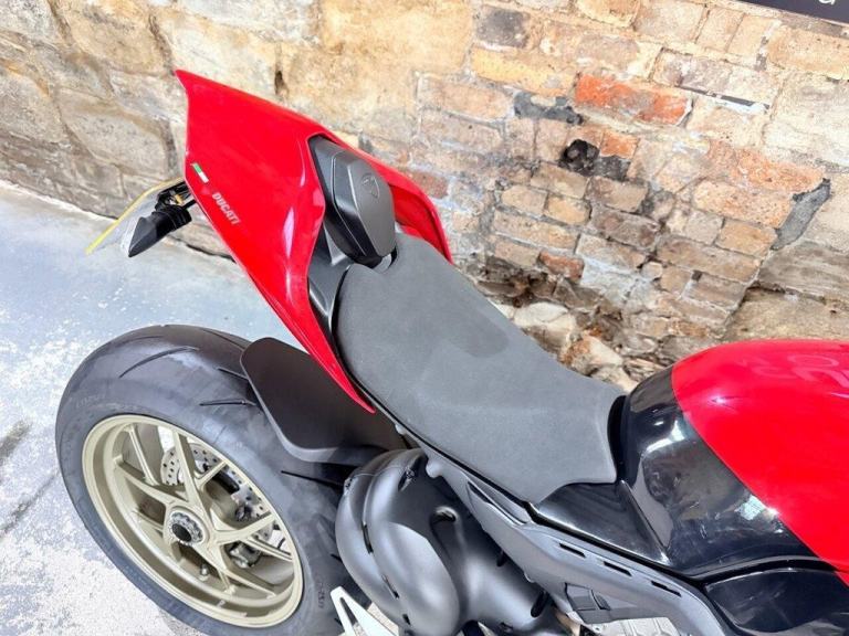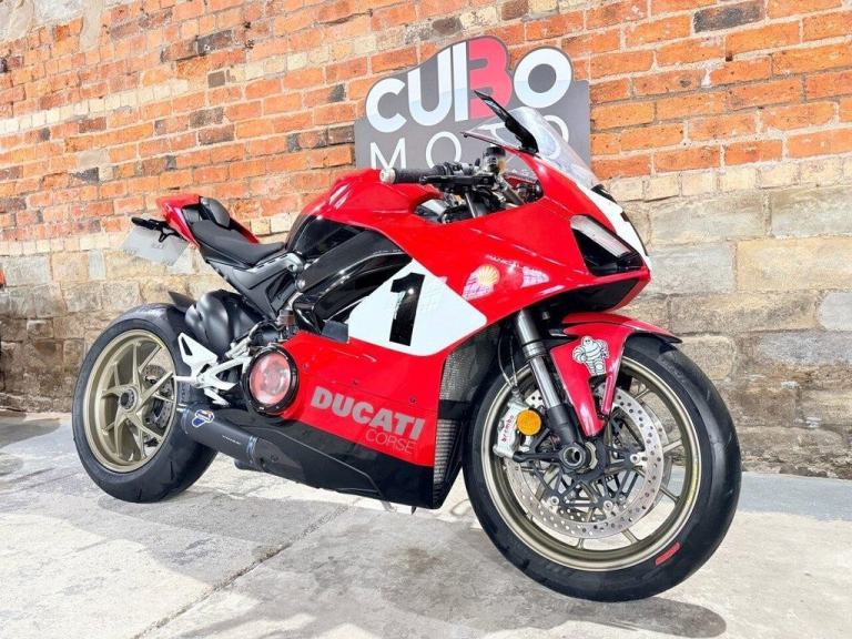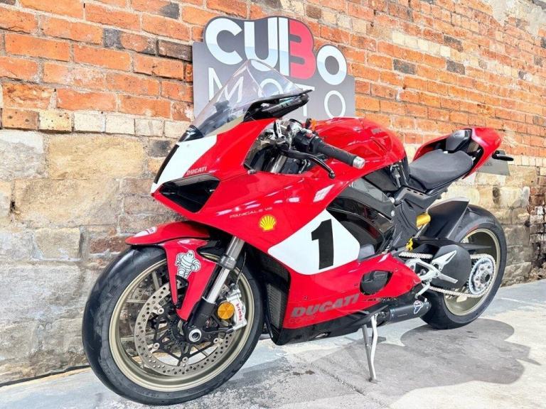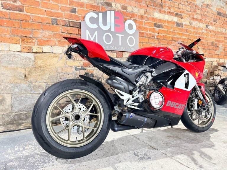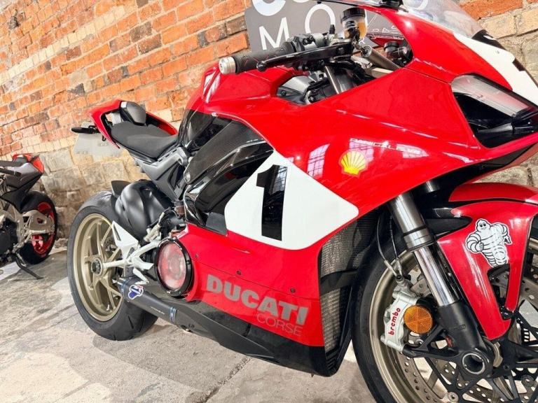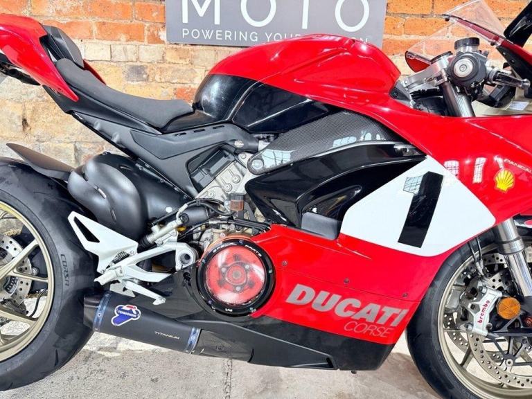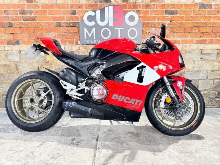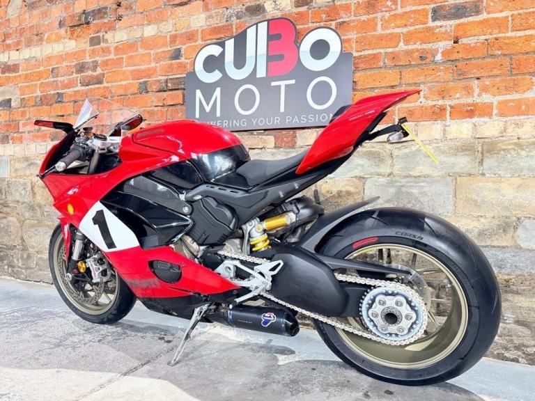 Ducati#039;s all-new Panigale V4. It#039;s no exaggeration to describe it as one of the best sportbikes ever made, perhaps even the best. Its new four-cylinder engine is melodious and powerful, it handles with agility akin to a much smaller bike, its electronics are leading-edge and fully customisable, and it looks sensational in person. The Panigale V4#039;s electronics are state of the art, employing a new six-axis Bosch IMU to provide a host of aids that keep riders safer while helping them go faster. Most are evolutions of existing aids, but there are a few new ones like slide control, drift braking and lean-angle sensitive quickshifting (up and down) and engine-brake control. All are independently adjustable via intuitive left-side switchgear and visible on the brilliant TFT instrument panel. This example is stunning, presented in the 916 Anniversario Foggy Replica Colours and Gold Wheels, and loaded with extras such as the Termignoni Exhaust with UpMap and more, this is a great Panigale to own! Please call for more info!