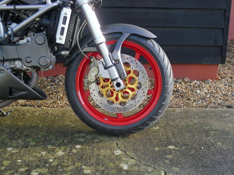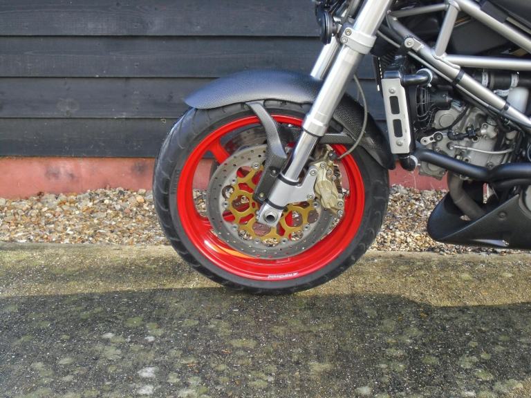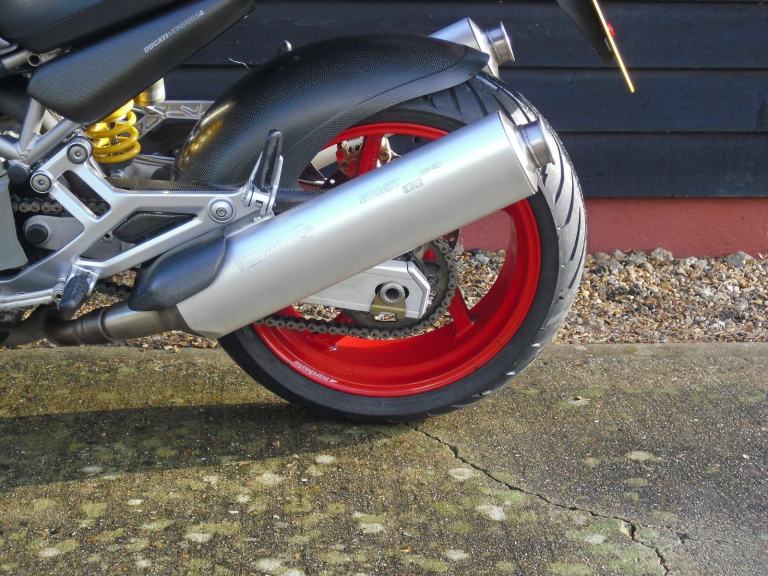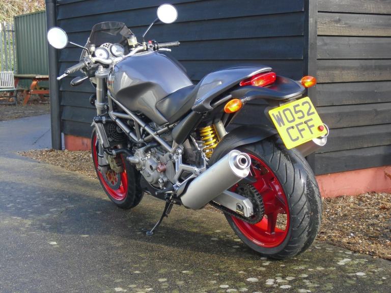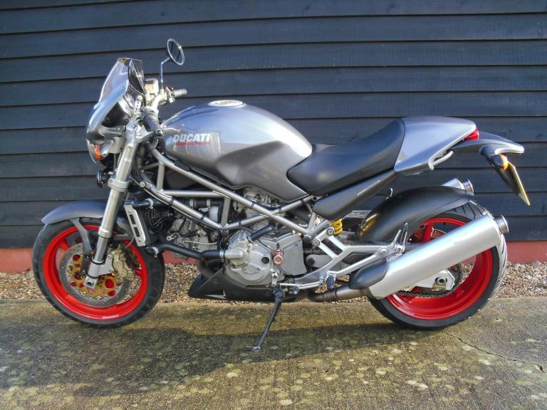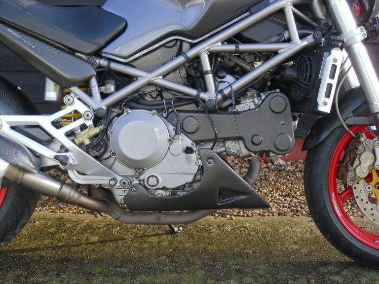 THIS IS THE DUCATI S4 MONSTER WITH THE 916 ENGINE . WE HAVE HAD THE BIKE THROUGH THE WORKSHOP FOR A FULL DESMO SERVICE WHICH INCLUDES VALVES , CAMBELT REPLACEMENT AND ALL OF THE FLUIDS /FILTERS . WE HAVE PREVIOUSLY MAINTAINED THE BIKE AND AT THAT TIME INSPECTED THE ROCKER ARMS AND REPLACED AS REQUIRED . IT HAS THE USUAL HIGH SPEC WITH CARBON FIBRE FRONT MUDGUARD , BELT COVERS , REAR HUGGER , BELLYPAN , SIDE PANELS AND EXHAUST GUARDS . IT IS A JAPANESE BIKE WHICH WAS IMPORTED AND REGISTERED HERE IN 2020 , WE CHANGED THE HEADLIGHT AND PREPARED THE BIKE FOR THE UK , AT THAT TIME , FOR THE PREVIOUS OWNER .THE BIKE IS READY TO GO , IT JUST NEEDS RIDING . VIEWING IS TUES TO FRI 9 TO 5.30 ,SAT 9.30 TO 3.30 .HPI CLEAR . PART EX POSSIBLE.