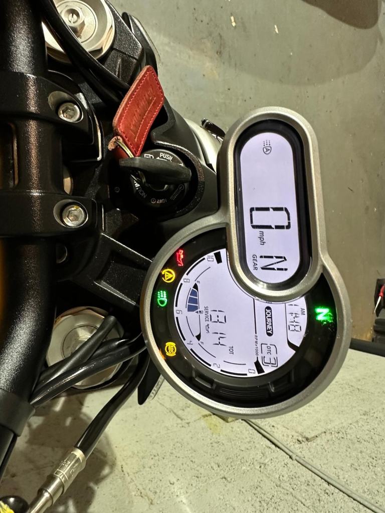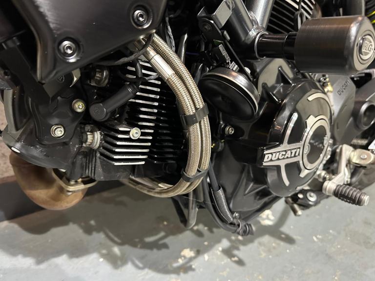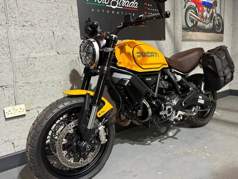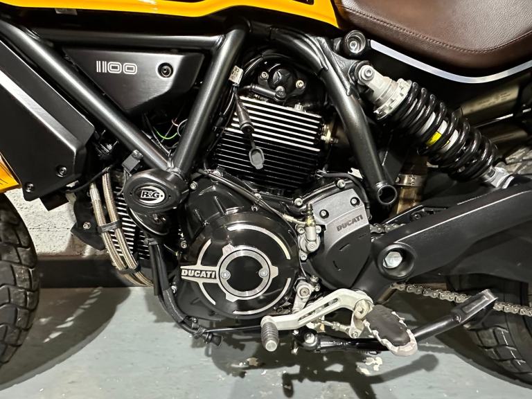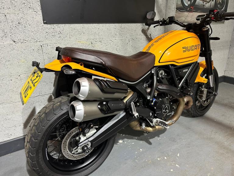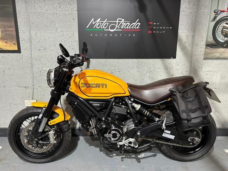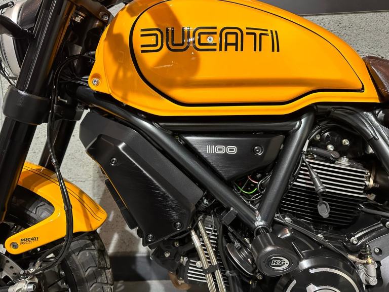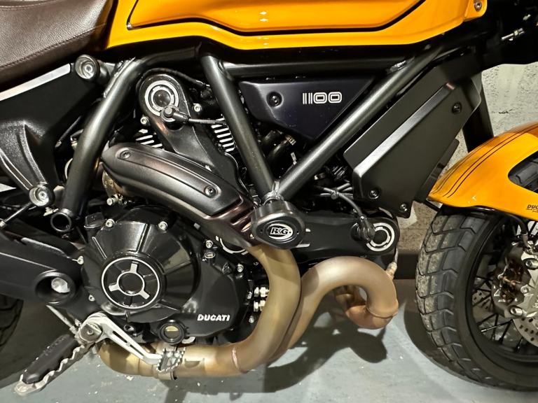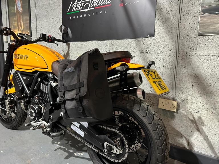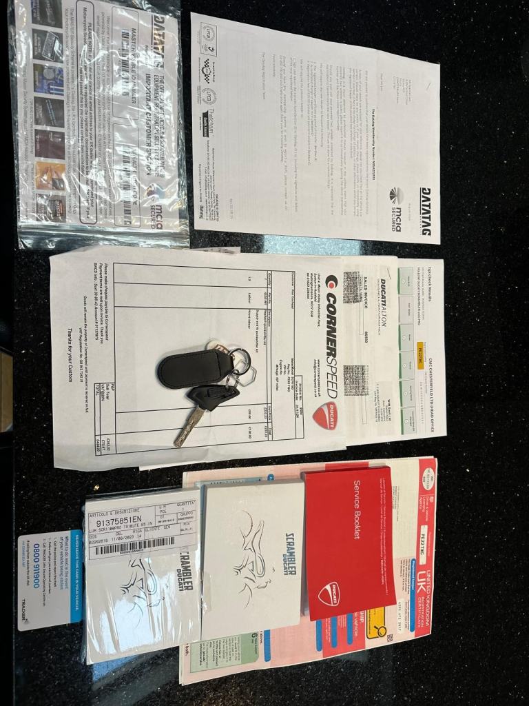 July 2022 Ducati Scrambler 1100Pro, 1314 miles with full two services already at Ducati in the book, the bike will have a belt service prior to sale.whilst the bike was having its second service at Moto Rapido it was fitted with ducati billet bar end mirrors, Borsa canvas bag and carrier, headlamp surround and grill and R&G crash protectors . This bill was for £1,587.35 and the invoice is include with the paperwork . The bike also was fitted with a Healtech quick shifter fitted by Corner Speed , this invoice is also present. Data tag and tracker also fitted.