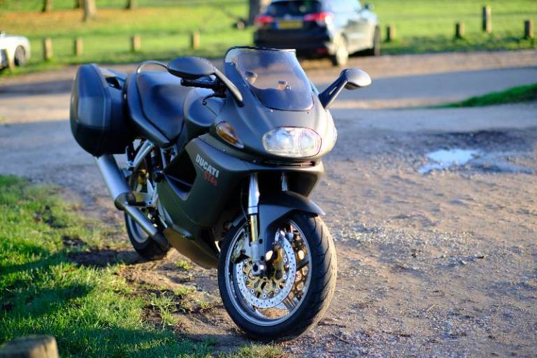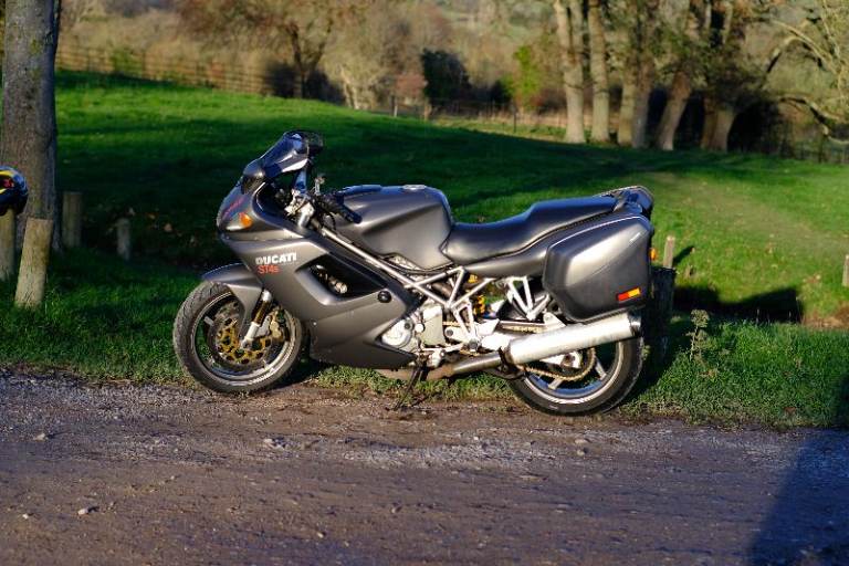 Low mileage Ducati ST4S with only 12,400 miles, in the rare 'Senna' matt grey (with matching panniers). Genuinely a special, unique and capable bike in great condition.