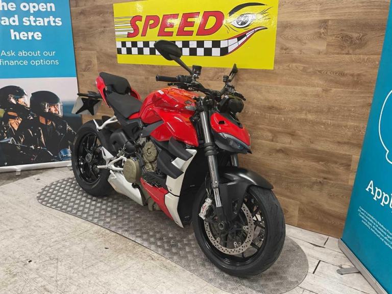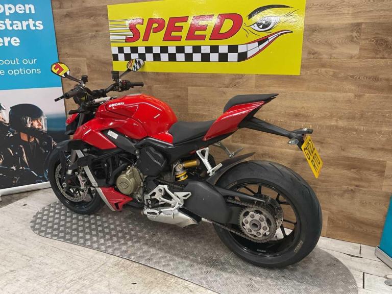 Ducati,streetfighter v4, 2022, 5031 miles, 2 owners from new, handbook, x2 service reciepts, last serviced to our knowledge 05.24 at 2678, we will do an oil and filter service, mot 02.27, spare key, very good all around condition, benefitting from having dual seat set up, Retail bikes: Competitive finance & great part exchange allowances. Call our team for an easy, no obligation quote. All our retail bikes come with a full PDI, valet & 3 months total cover warranty (additional £75). Credit & debits cards accepted. Delivery in mainland UK from only £125 + VAT. Compulsory admin fee of £100 for 3rd party finance.