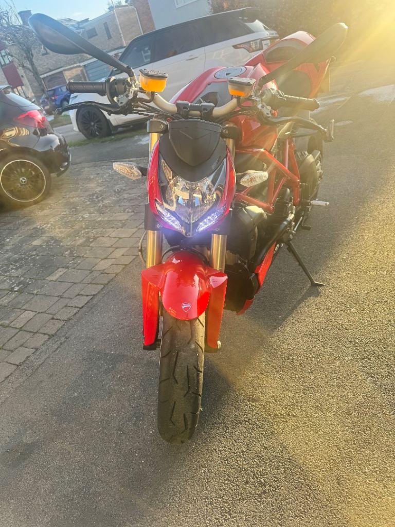 Stunning Ducati Streetfighter 848 in classic red with very low mileage. Only 4,100 miles and in excellent condition. Sounds amazing with twin Termignoni exhausts and rides exactly as it should.