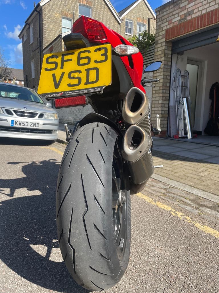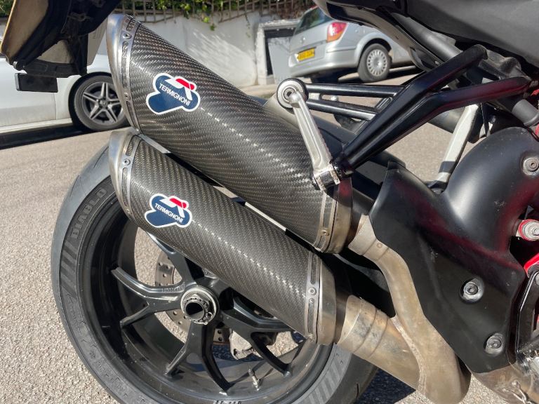 It has new Pirelli Rosso Corse tyres (not fully run in yet), original Termignioni pipes, and no modifications. One of the baffles is currently missing - I will continue to look for it, but assume for now that the bike only has the one fitted currently.