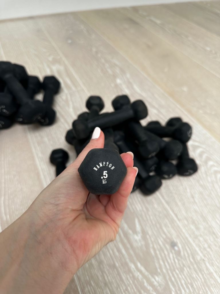Posting for 14+ years14 x pairs of Hampton dumbbells 1kg 0.5kg