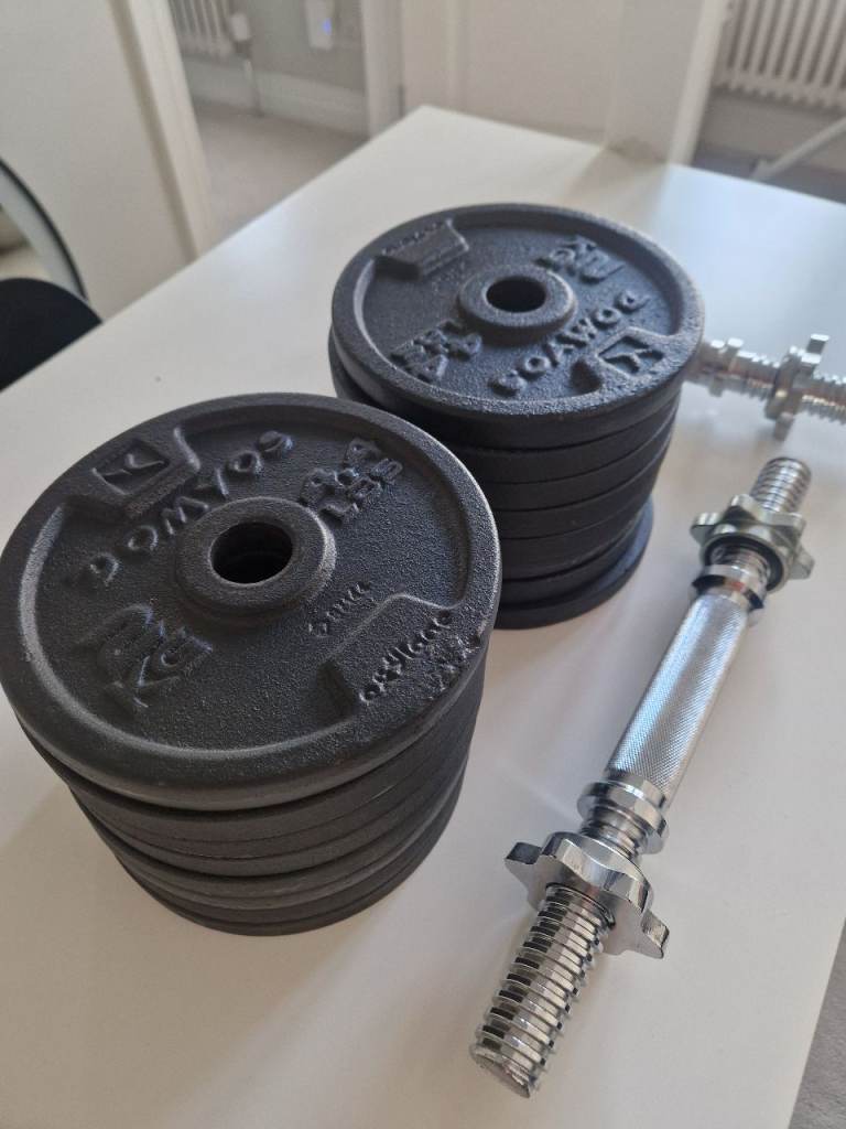 Posting for 4+ years32kg Adjustable Dumbbell Set – 16 × 2kg Plates + 2 Bars (Domyos / Decathlon)