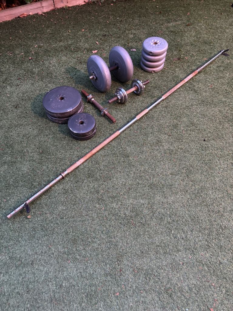 As new 2x 15kg & 2x 22.5kg bulldog gear hex rubber dumbbells set