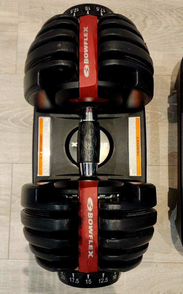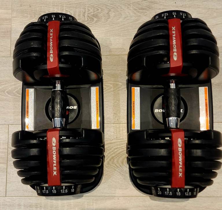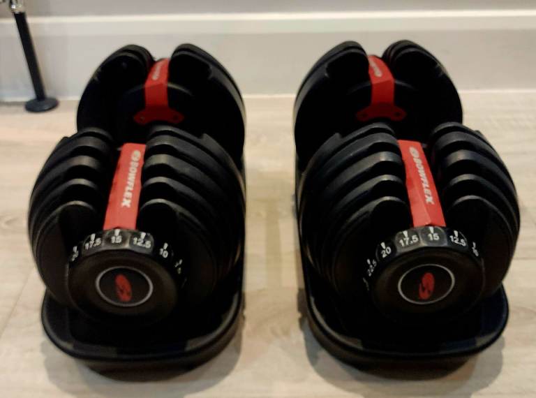 Genuine pair of bowflex SelectTech adjustable dumbbells 2-24kg/5-52lbs. Excellent condition and fully working. Hardly used. Genuine bowflex not fake copies like others are selling from china. Serial number can be checked on bowflex website to certify authenticity.