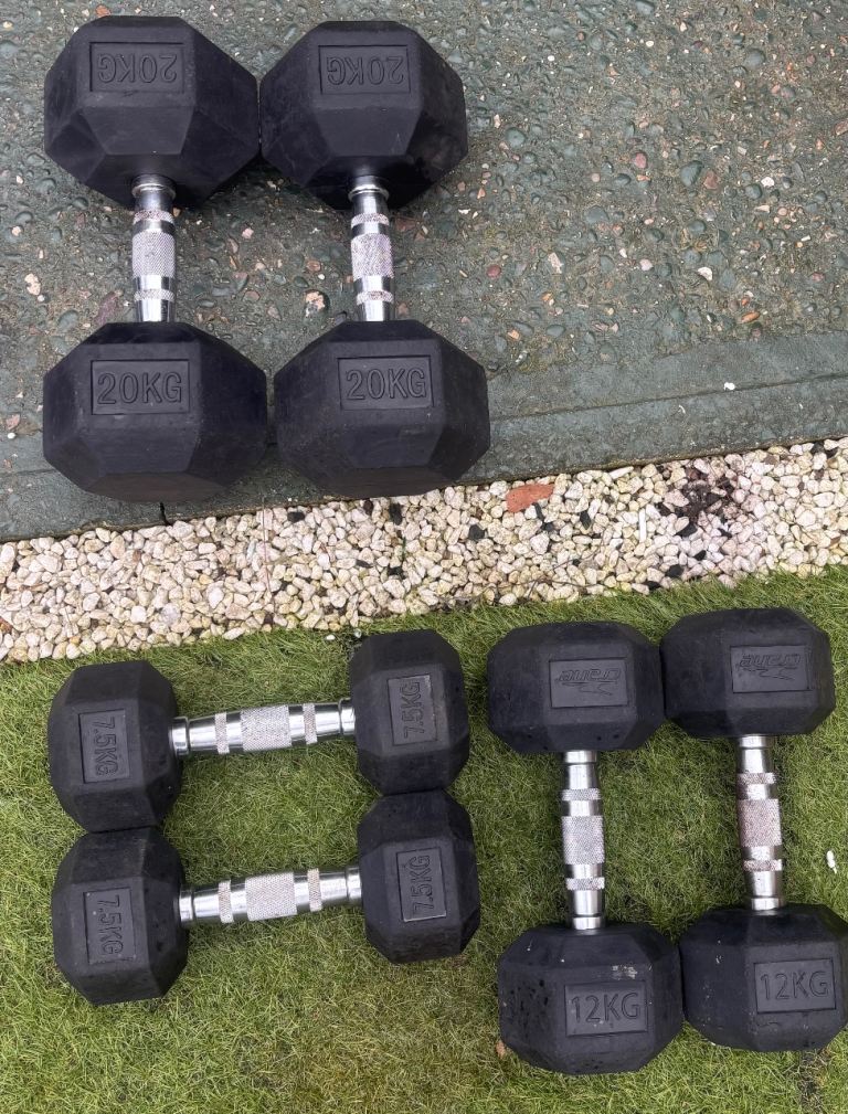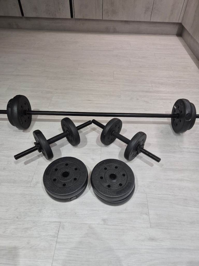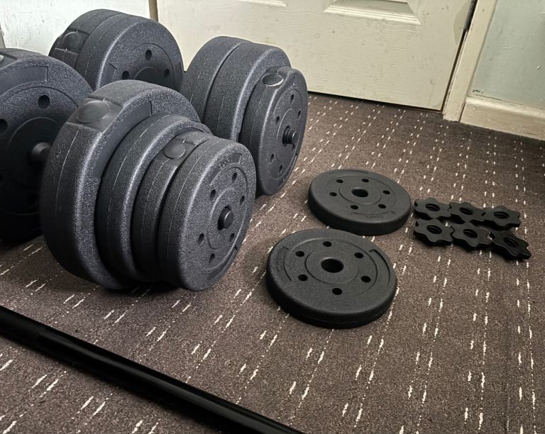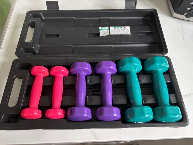 Opti vinyl dumbell and barbell set. 6 x 1.25kg and 6 x 2.5kg