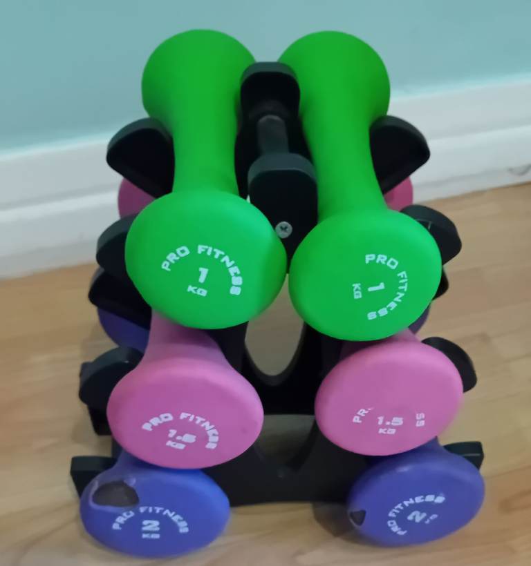 Dumbells x 6 & Rack x 1.