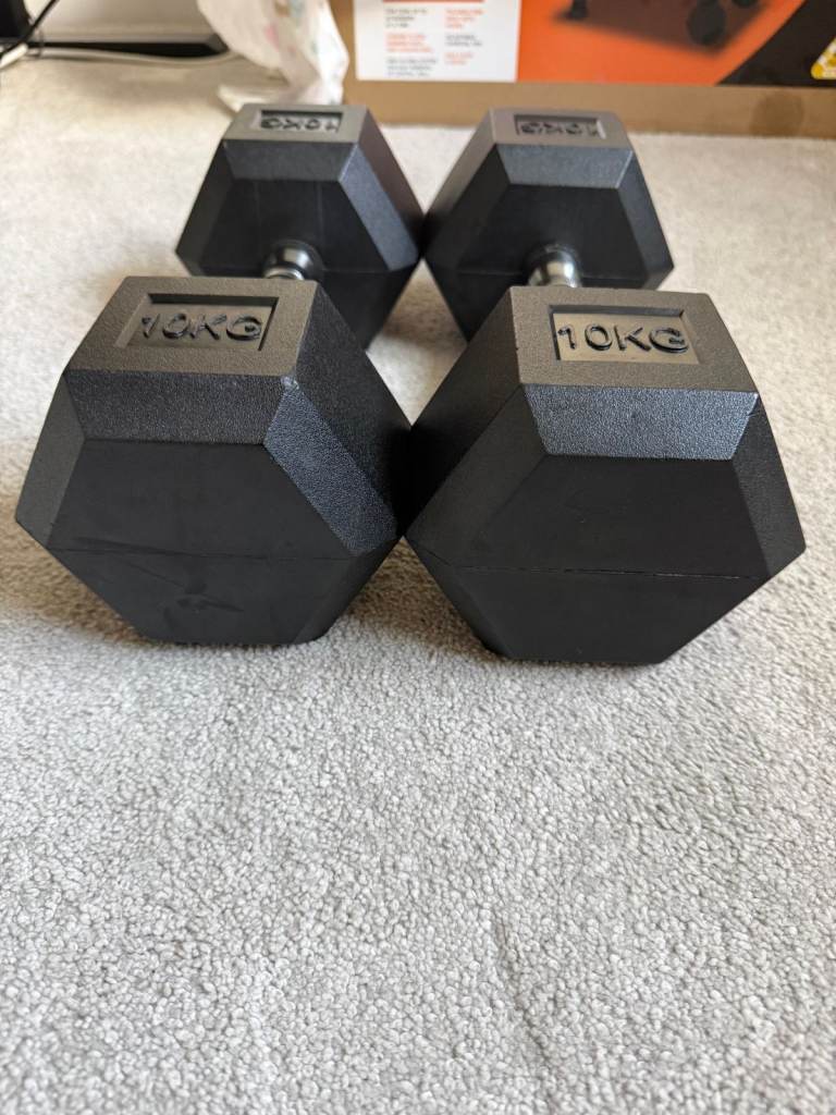 Immaculate hex rubber dumbbells set. Only used a couple of times and in mint condition.