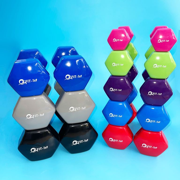Multi Coloured Vinyl Hex Dumbbells 1kg - 10kg