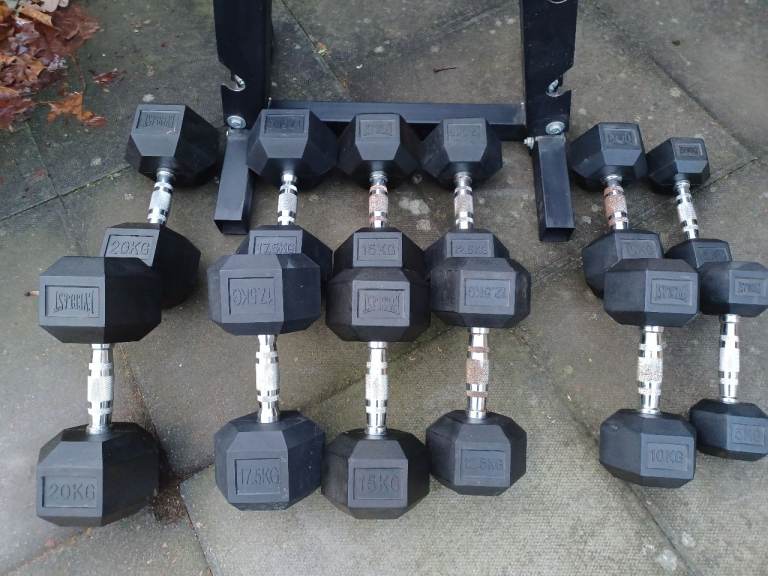 RUBBER HEX DUMBBELLS WEIGHTS SET - 5/10/12.5/15/17.5/20KG