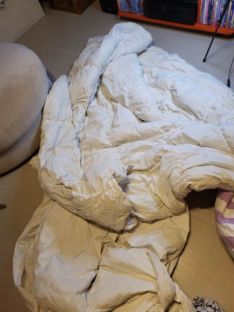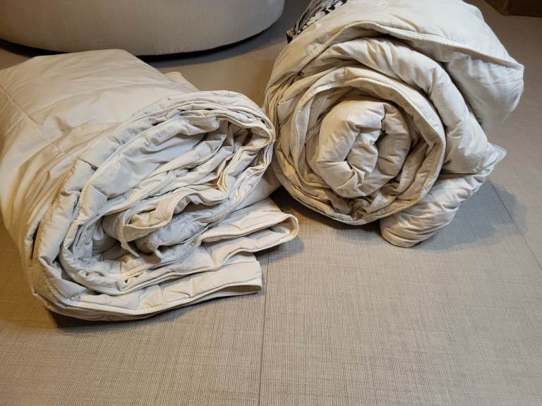 Must go ASAP EH28 8SB, hence the price. 2 in 1 Duvet set 4.5 tog + 10.5 tog. Total 15 tog winter duvet. Clip together or use as two separate. The 10.5 hardly used and has been stored in airing cupboard. The 4.5 had more use but plenty good, can be machine washed and tumble dried. 100% cotton cover in creamy white, it was never a brilliant white, so doesn't look good on photos