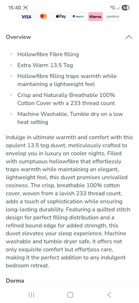 Posting for 8+ yearsDorma like down duvet - king