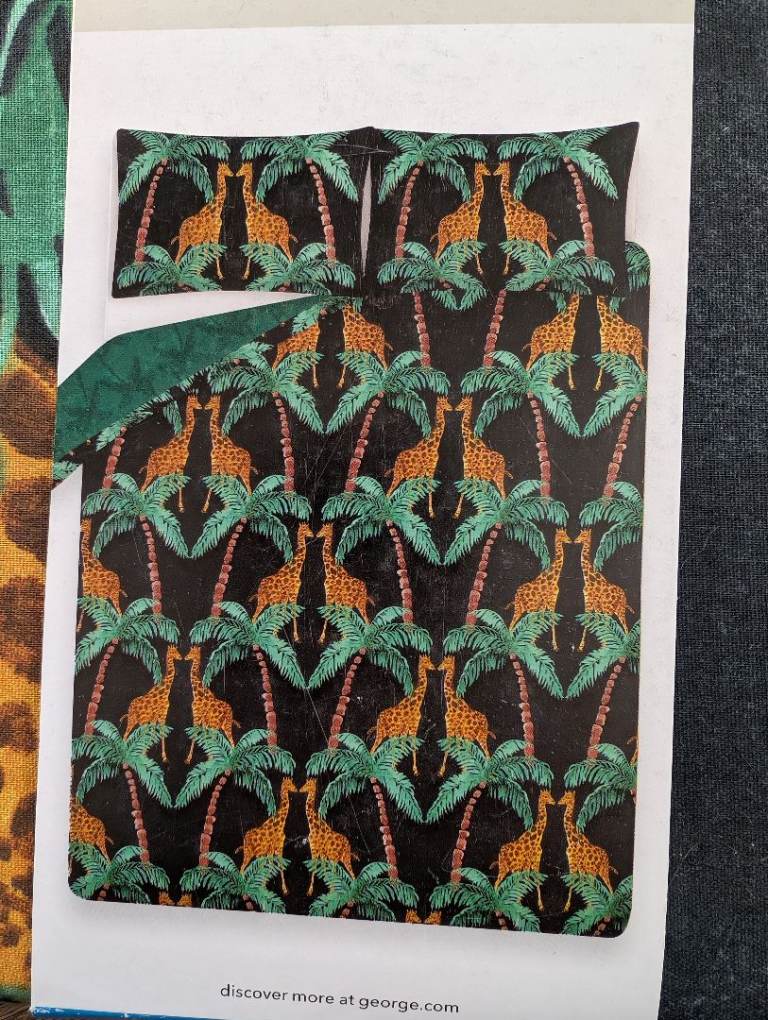 George home king size reversible duvet cover set with giraffe and palm tree design.