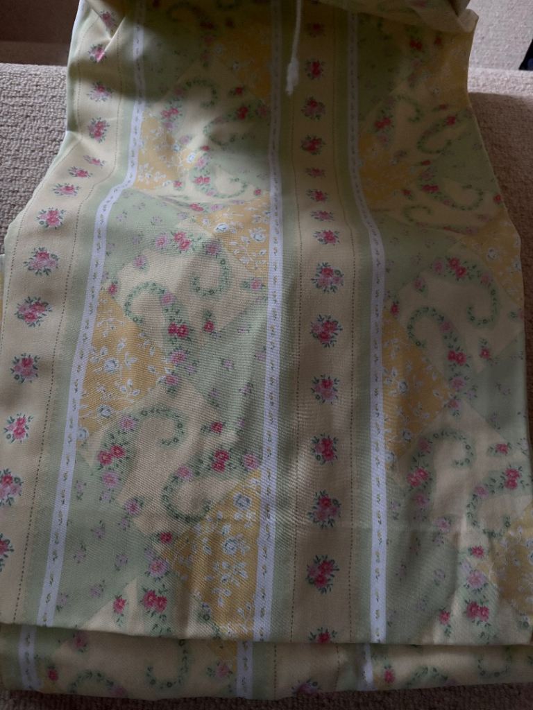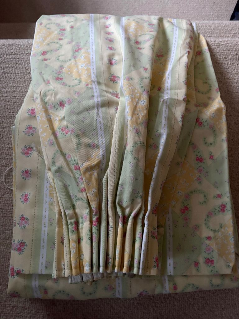 2 Pairs of fully lined curtains with matching tiebacks each curtain approximately 66 inches wide by 54 inches drop with 3 inches hem 50% cotton 50% polyester all washable like new