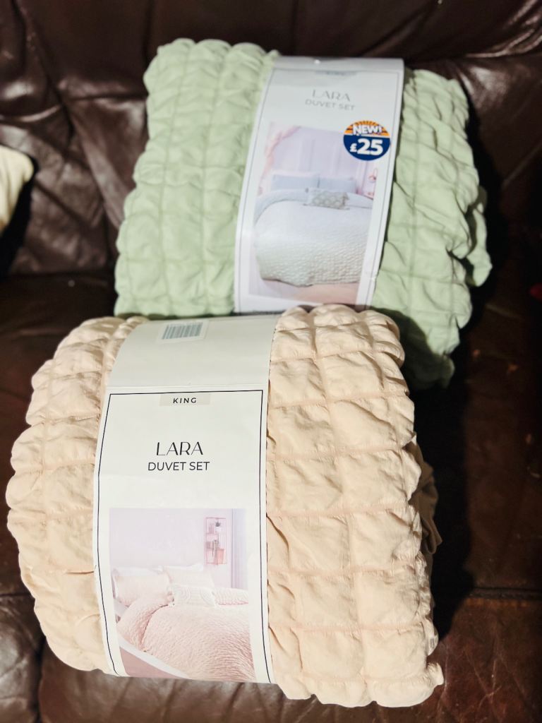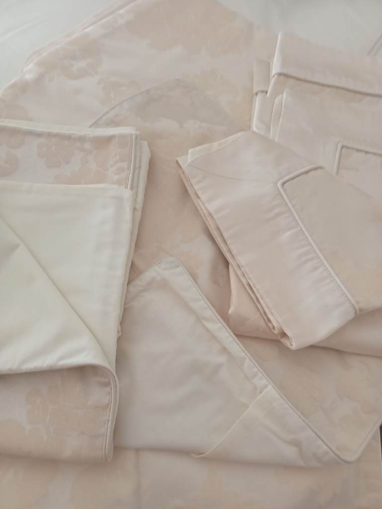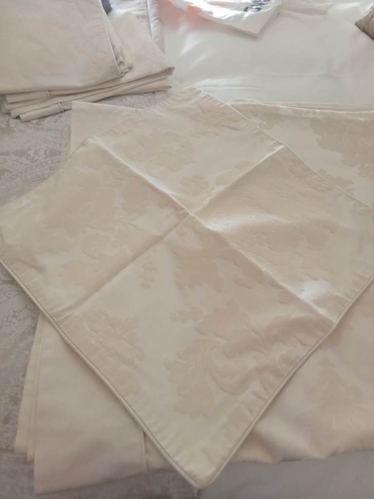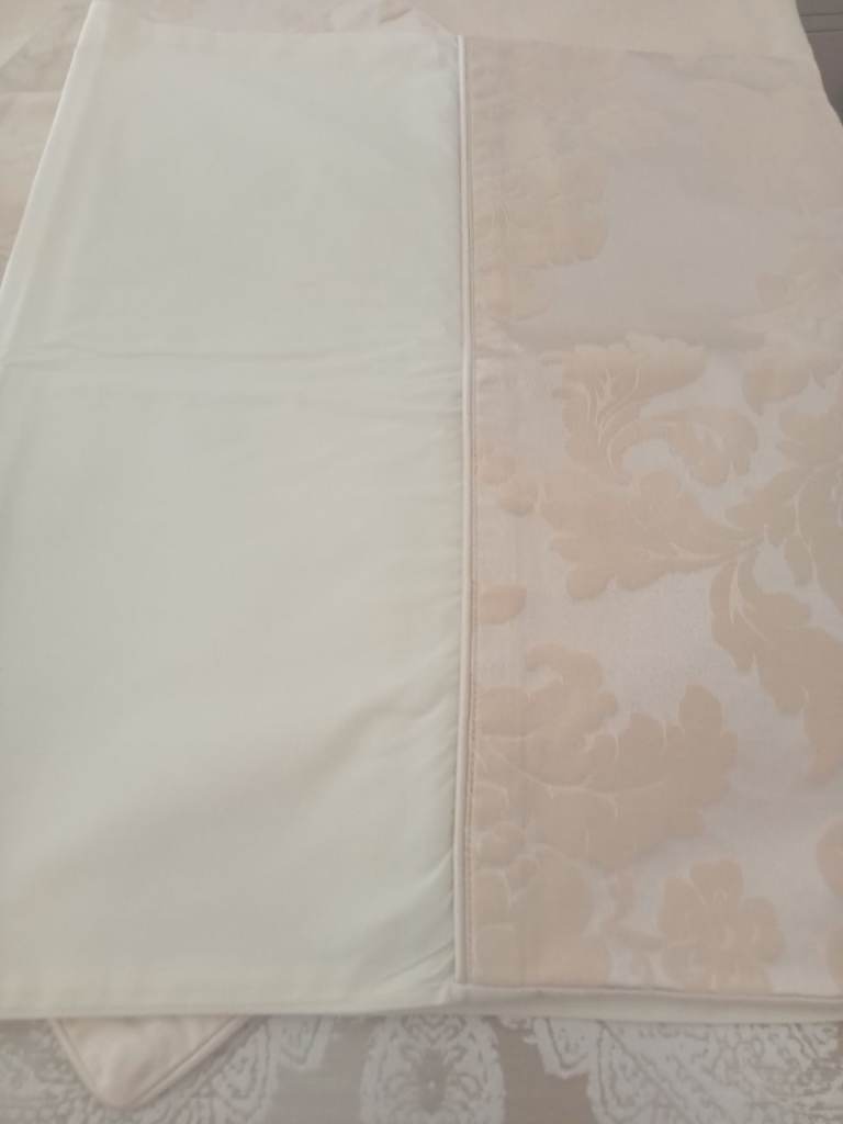 Dorma Cream jachard pattern, size Double.Included 2 oxford p/c 2 standard p/c with pattern on edge,2 cushion covers too match.