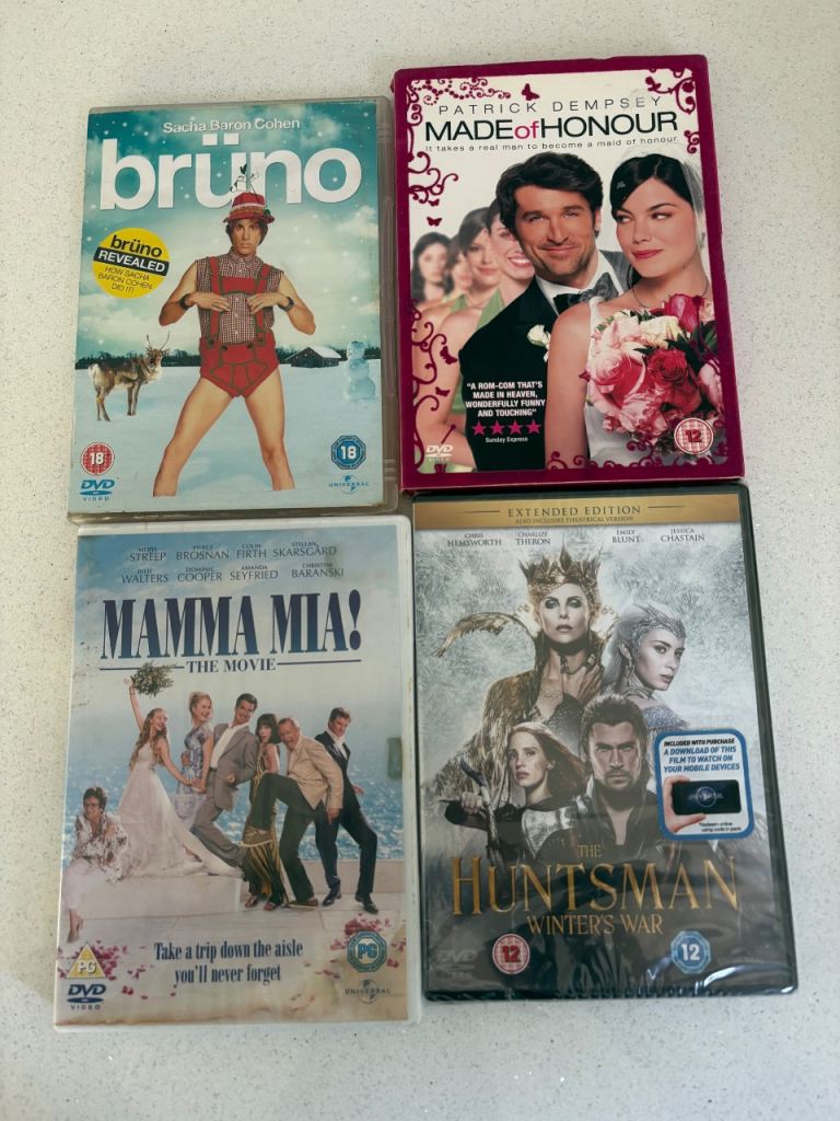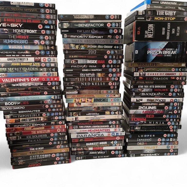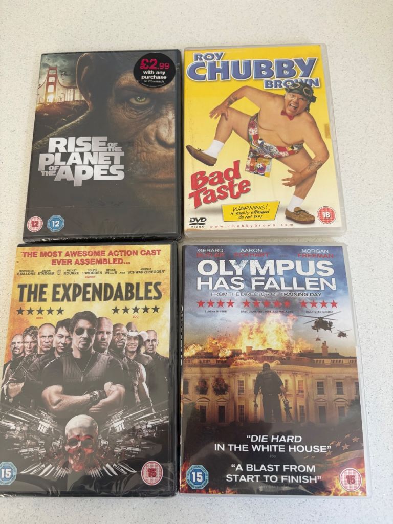 Mixed genre DVDs with 3 still in cellophane.