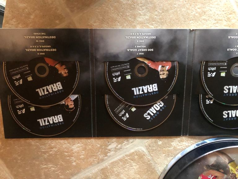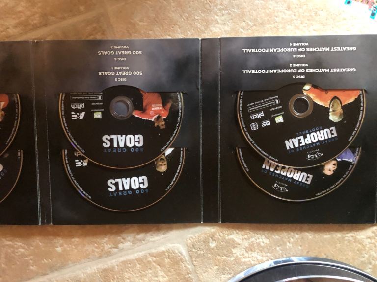Collectors item. Box set of football DVDs. 10 discs in total compiling classic matches, top players etc. some discs are new and have not been used.