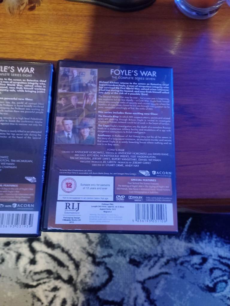 Complete dvd collection of Foyles War 1-8, starring Michael kitchen,region 2, discs in excellent condition,from a smoke free home collection from sawston