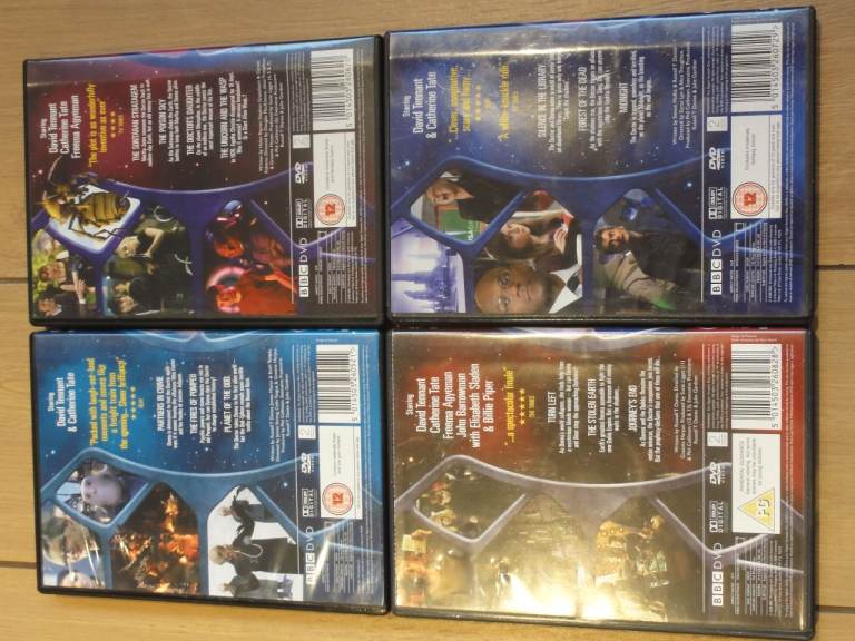 For sale is a set of Doctor Who Series 4 DVDs from 2008. This was the last series to star David Tennant, also starring Catherine Tate and Freema Agyeman. Comes in four boxes all in excellent used condition. Collection from Stoke Newington, Hackney preferred
