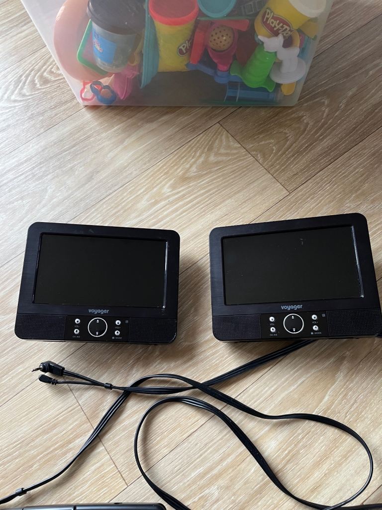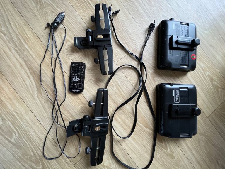 Original Voyager DVD 7 series set for car. In good condition. The Voyager 7 ,twin screen portable DVD player system, is the ideal companion for any journey. patented car mounting system make it the perfect solution to keeping the kids happy in the car. The 7" tablet style DVD player can be used on its own or both screens can be linked together using the supplied cable to share a movie. The entire system can be installed and ready for use in minutes, without any need for tools. Then simply slide your DVD into the base of the player and off you go!