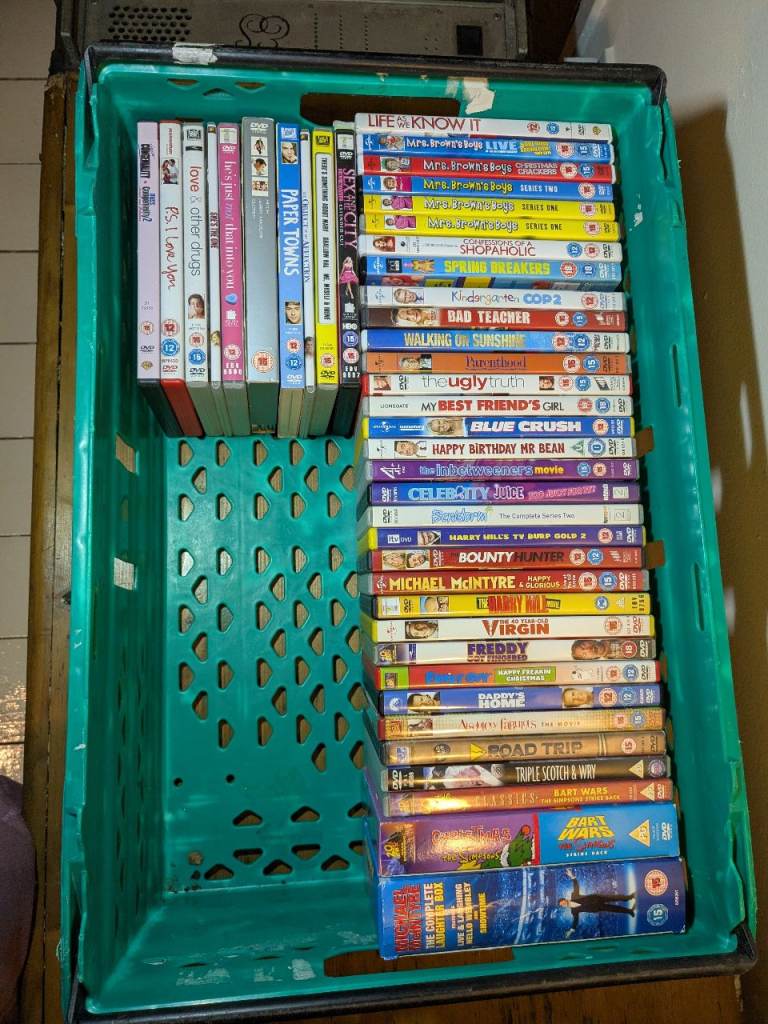 Most unopened in original plastic cover. A few have been played. Includes all 10 movies as well. One dvd does have a big sticky label on it. But dvd plays fine. Otherwise all like new or are new. Total weight 7kg so postage going to be £7 plus. Or free pick up from Plymouth.