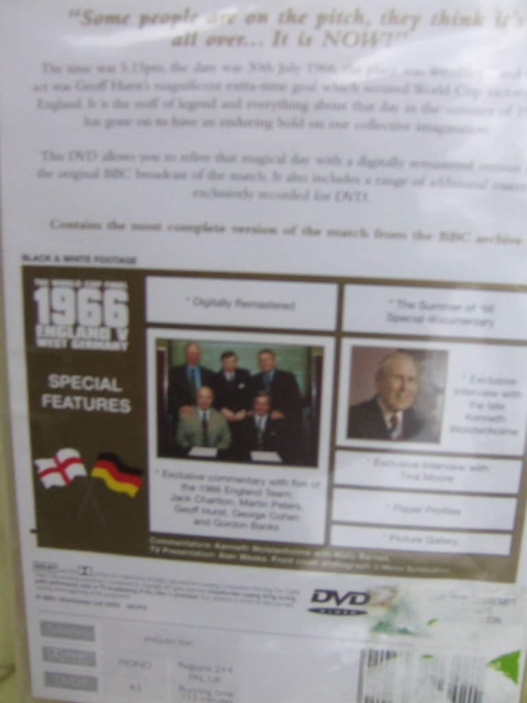 BBC Dvd, THE WORLD CUP FINAL 1966, ENGLAND v WEST GERMANY. Dvd is new and still sealed in its wrapper. Would make an ideal gift for footie / sports fan. £3, collection from Whitstable.