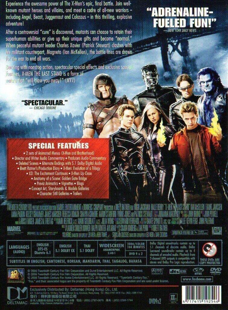 X-Men 3 - The Last Stand. 2-Disc Limited Edition Region 3 Imported DVD. It will require a multi-region DVD player to use it. Widescreen edition DTS surround sound and loaded with extras.